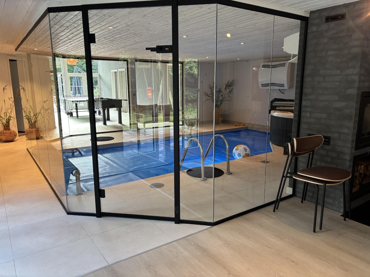 Tag hele familien med til denne fantastiske bolig med masser af plads til sjov og ballade. Et flot og velindrettet aktivitetshus med bl.a. swimmingpool, spa og sauna samt aktivitetsrum med diverse aktiviteter. Huset ligger i området ved Råbylille Strand på en grund med masser af udendørsaktiviteter til børnene. Bemærk, Der er 14 sovepladser 5 værelser med 2 sovepladser i hver og 4 befinder sig på husets hems.