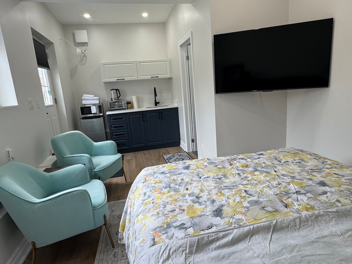 Potpuno privatna čajna kuhinja u studio apartmanu (bez kompletne kuhinje) Ekskluzivan pristup hidromasažnoj kadi za vrhunsko opuštanje Moderan prostor s kaminom i pametnim televizorom za strimovanje Brzi Wi-Fi Otprilike 30 minuta od centra Toronta Praktična lokacija u blizini Termea Spa i Frenchman's Bay, Pickering Casino Resort & Toronto Zoo Parking mesto za automobil veličine SUV-a. Kamioni neće odgovarati. Bezbjedno i zaštićeno sa prijavljenom kamerom na ulazu i brzim ugošćavanjem