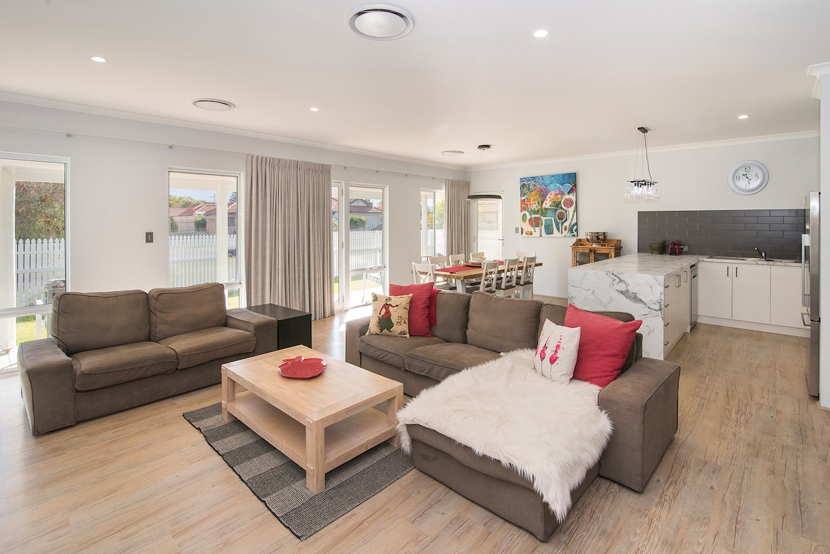 Uživajte u ovom zapanjujućem, prostranom domu uz plažu od 4brm dok uživate u okeanu Geographe Bay. Posmatrajte izlazak sunca i delfine sa prostranog prednjeg balkona u jutarnjim satima i upijte spektakularne zalaske sunca u večernjim satima. Deca mogu da se zabave u sobi za Olimpijske igre koja je opremljena brojnim aktivnostima koje će ih zaokupiti. Ako vam treba i „srećno mesto“ da biste pobegli, na pravom ste mestu.