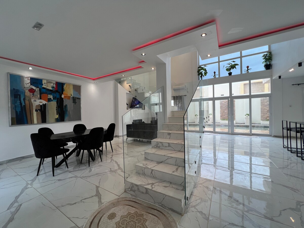 Villa moderne et conviviale, idéale pour des séjours en famille. Profitez d’un espace spacieux et lumineux avec une piscine extérieure, soigneusement aménagé pour votre confort. La villa dispose d’une table de billard et d’une table de ping-pong, parfaits pour des moments de détentes et de divertissement. Situé adans un environnement calme et agréable, elle offre tout le nécessaire pour un séjour relaxant et mémorables