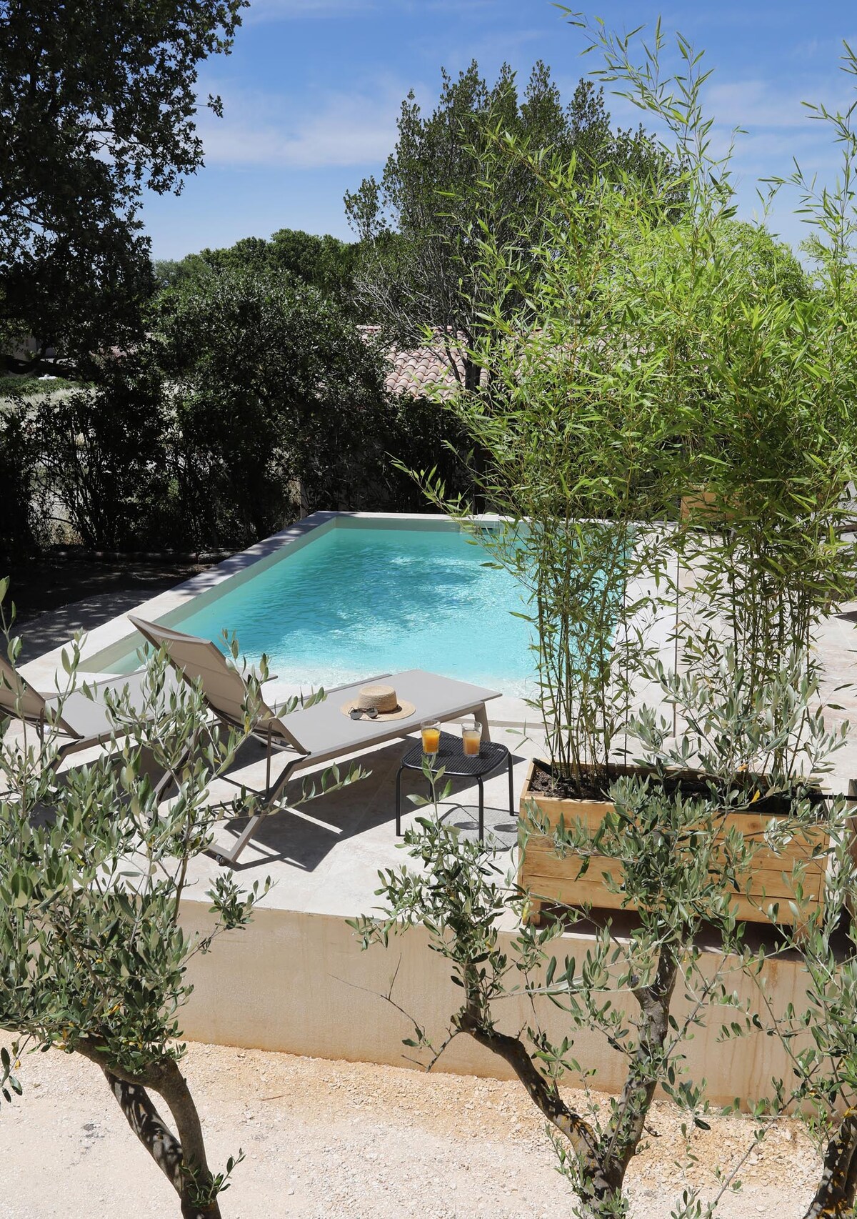 Oaza, retko mesto za ljubitelje prirode usred maslinika od jednog hektara između Uzčeva i sela Collias. U ovoj maloj arhitektonskoj kući napravljenoj od Versa sa potpuno autonomnom privatnom terasom, solarnom strujom i bušotinom, naći ćete mir i spokoj. Ujutro će vas paunovi dočekati i poželjeti vam lep dan. Gardon i Alzon u susedstvu za plivanje i bazen koji delimo sa nama, osvežiće vas tokom letnjih dana