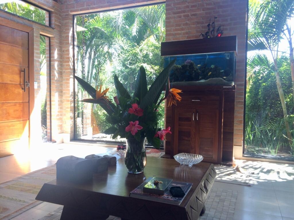 Condominium de Chácaras in Piracaia. PORODIČNA ATMOSFERA za odmor. Piracaia is near Atibaia( 17km) and Joanopolis Cachoeira dos Pretos( 25km) Kuća od cigle sa pogledom i staklom usred vrtova, roštilja, bazena, terase i voćnjaka. U prizemlju se nalaze 3 spavaće sobe, dva dnevna boravka, ostava, kuhinja i kancelarija. Na spratu su dva privatna apartmana sa balkonima, TV prostor sa Netflix-om,Sky, globoplay, Amazon i mesanine za čitanje i uživanje u pogledu.