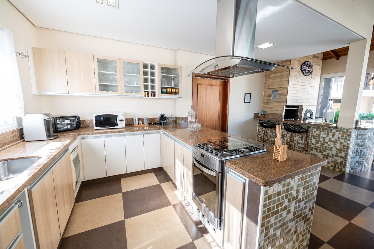 Kuća koju je dizajnirao arhitekta Décio Navarro nalazi se u ograđenoj zajednici sa privatnom plažom i danonoćnim obezbeđenjem. Sa 650 metara korisne površine, naša kuća je ispred brane i ima 5 apartmana, velike sobe i kompletno slobodno vreme: bazen, roštilj, rernu za picu, saunu i hidromasažnu kadu. Kondominijum takođe ima teniski teren sa noćnim osvetljenjem, pristanište, pristupnu rampu za male brodove i prelepe prostore za šetnje.