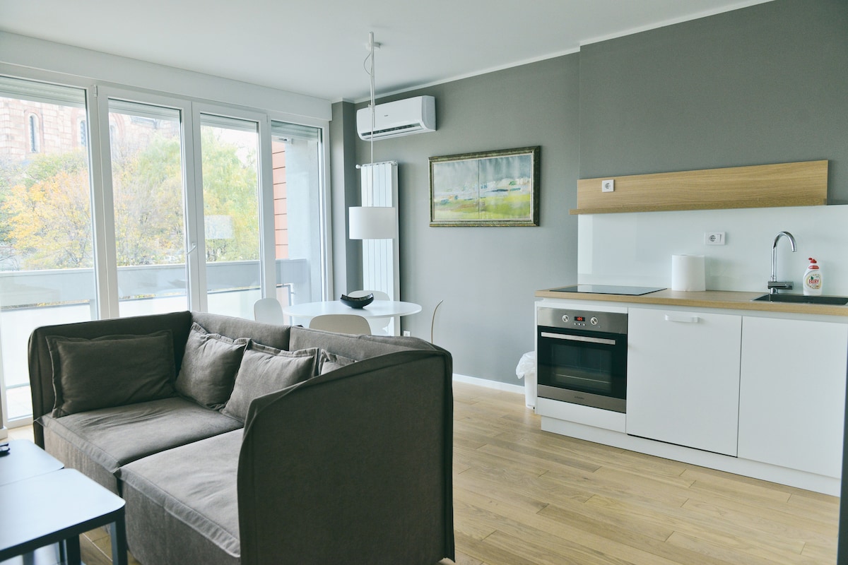 Welcome to our brand new, city center apartment in the heart of Belgrade. With a 5-minute walk to popular destinations like Skadarlija, Belgrade Fortress and Knez Mihailova St, you'll have easy access to the city's rich culture and history. Our apartment is bright and fully equipped with everything you need for a hassle-free stay. Surrounded by an abundance of restaurants, bars and shops, you'll have the perfect urban experience right at your doorstep.