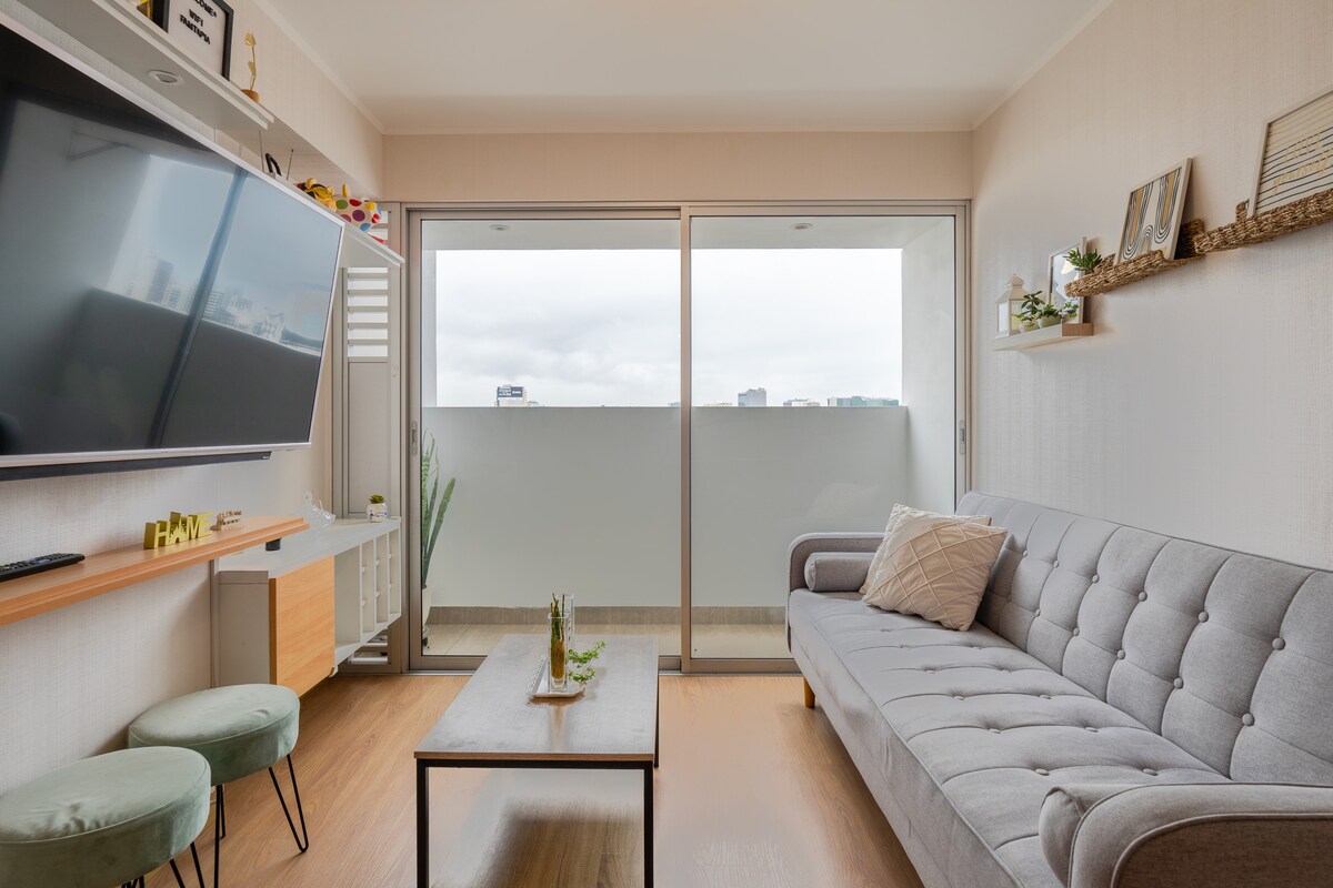 Enjoy a comfortable and secure stay in a modern brand-new apartment in Pueblo Libre, near Magdalena. Ideal for families, couples, or business travelers seeking comfort, a strategic location, and a peaceful environment. Bright, welcoming, and carefully maintained for up to 4 guests, close to main avenues, supermarkets, and restaurants.