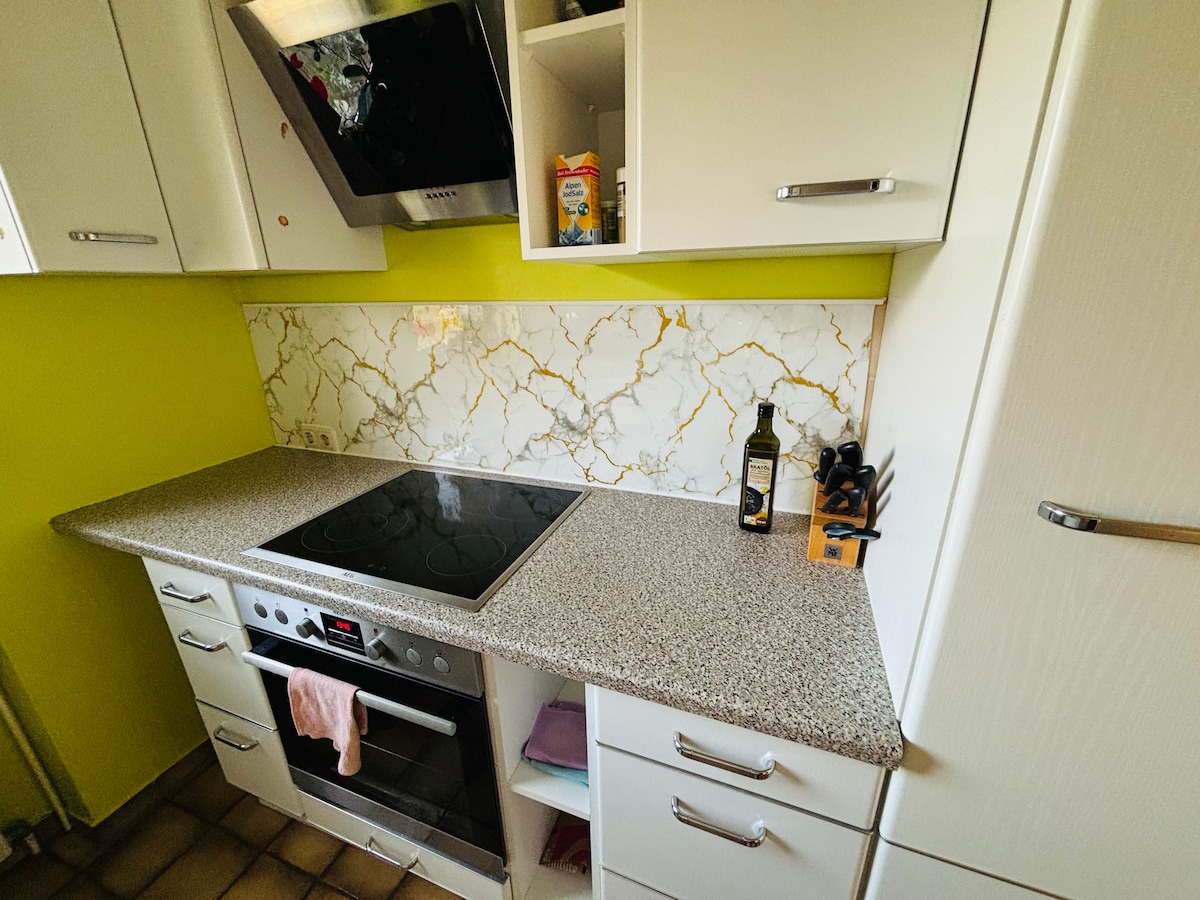 Lijepa mala dodatna stambena jedinica sa privatnim ulazom, malom kuhinjom sa trpezarijom i malim kupatilom sa tušem. Okolo je mnogo šuma i livada. Savršeno ako želite da dođete sa svojim četvoronožnim prijateljem, koji je uvek dobrodošao 🐕😉 Prelepe šetnje su moguće svuda okolo, čak i sa odredištima na kojima možete da se zadržite. Frankfurt je takođe udaljen 30 minuta. !!!Za majstore, zanatlije ili slično, stan NIJE dostupan!!!