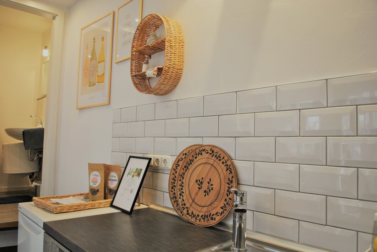 Uživajte u savršenoj kombinaciji prirode i gradskog života u našem elegantnom dupleksu. Nalazi se na samoj granici šume, idealan je za šetnje ili trčanje, a do centra grada ima samo nekoliko minuta hoda (15 minuta). Moderna gostinjska kuća nudi otvoreni dnevni boravak sa malom čajnom kuhinjom i udobnim kutkom za opuštanje. Prostor za spavanje na galeriji stvara velikodušan osjećaj prostora. Obezbijeđeni su fitnes sadržaji kao što su joga ili pokretna traka, kao i privatno parking mjesto.