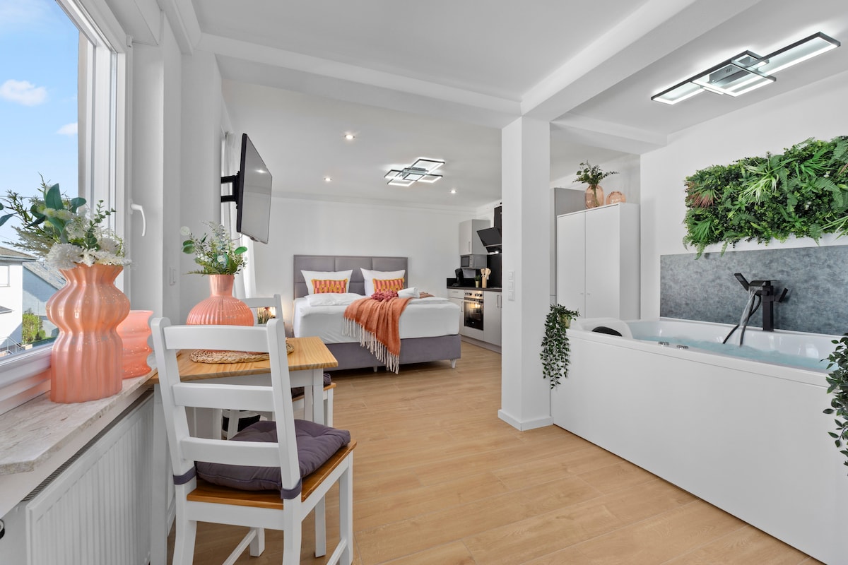 Dobro došli u ovaj luksuzni stan koji vam nudi sve za odličan kratkoročni ili dugoročni boravak u Lahnsteinu: - 2 udobna bračna kreveta (1 bračni krevet (širine 180-179 cm) i 1 bračni krevet (širine 180-179 cm)) - Kauč na razvlačenje za 5. i 6. gosta - Smart TV i NETFLIX - Kuhinja - NESPRESSO KAFA - Aparat za kafu - Mašinu za veš - Parking mjesta - 2 velike terase s veličanstvenim pogledom i susjednom rijekom - Hidromasažna kada (dostupna od aprila do decembra) - Samo 15 minuta vožnje do Koblenca