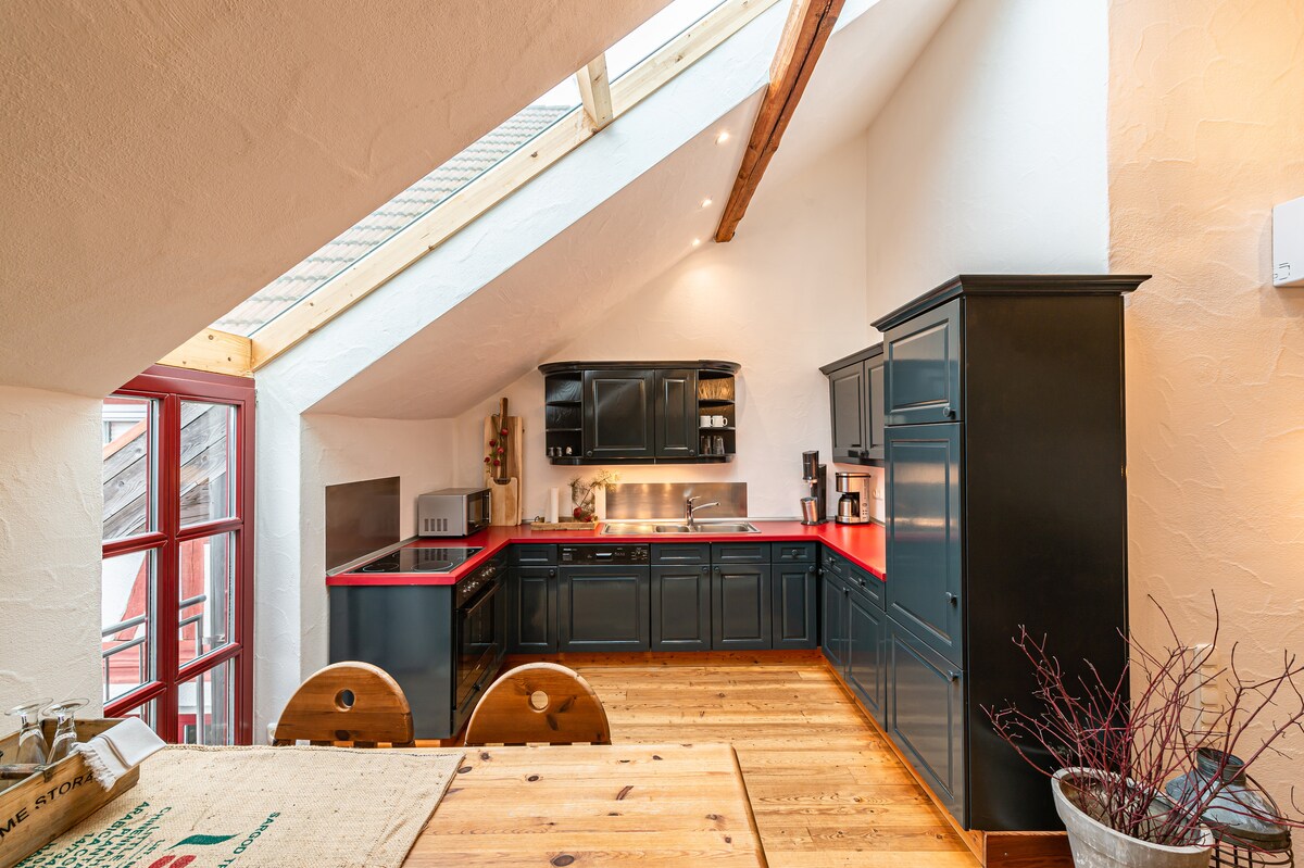 Karlshof - jedinstveni apartman u potkrovlju na biciklističkoj stazi, sauna