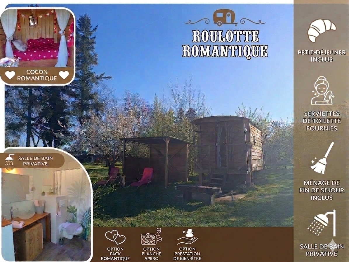 Le charme du rustique, le bien-être grâce au jacuzzi, la détente avec la piscine et le calme de la nature. Laissez-vous embarquer dans notre petit coin de paradis où se côtoient 3 logements atypiques récents bien équipés (un bateau, un mobil-home et notre petite nouveauté 2022 : une jolie roulotte). Nous faisons notre possible pour faire de votre séjour un moment de repos et de bien-être.