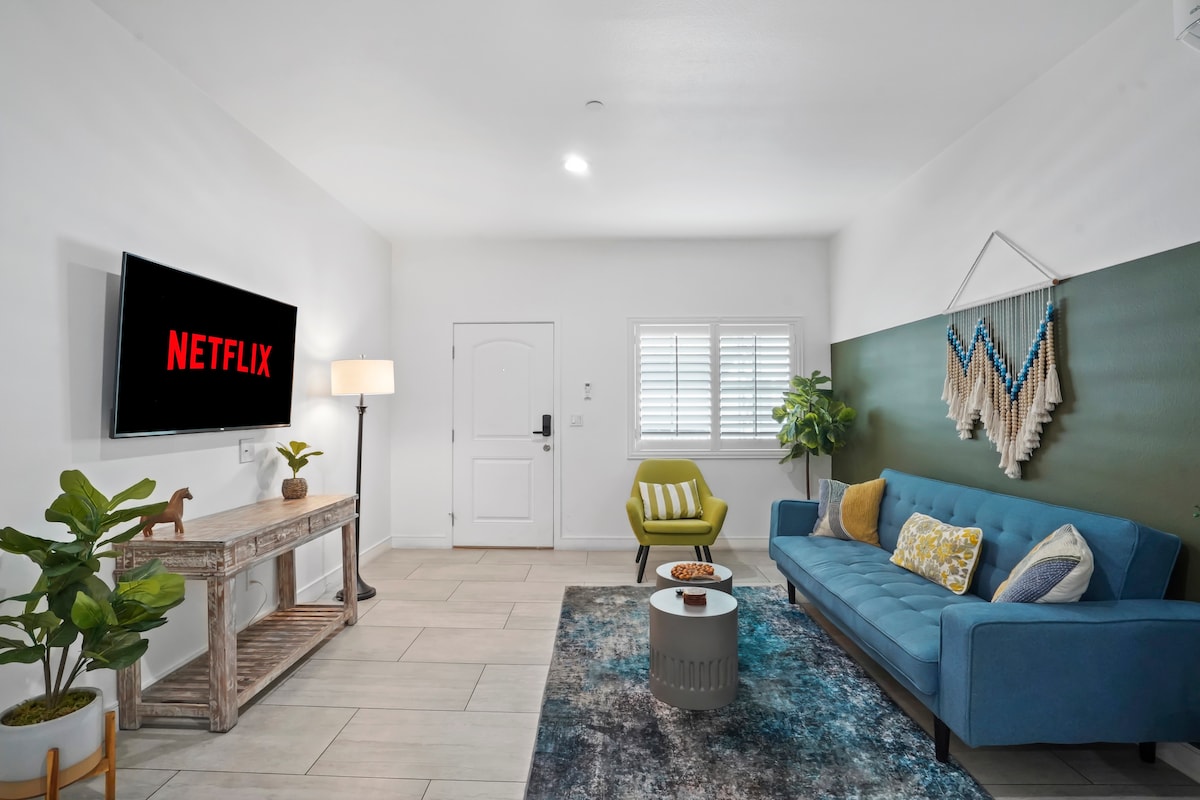 Prostrana i elegantna jedna spavaća soba, jedan stan u kupatilu, pješke do Loma Linda Univ. Ovaj elegantni stan ima nove klima-uređaje/grijače, 2 pametna televizora sa 4K Apple TV-om, privatni i namjenski spektar Wi-Fi mreže za poslovne korisnike (1 gig brzina). Kuhinja je potpuno opremljena sa mnogo osnovne opreme, besplatnim mahunama za kafu, Britta filterom za vodu i mnoštvom osnovnih potrepština za čišćenje. Veliki bračni krevet, sa jastucima od perja i evropskim čaršafima od organskog pamuka. Ova jedinica ima jedno besplatno namjensko parking mjesto.