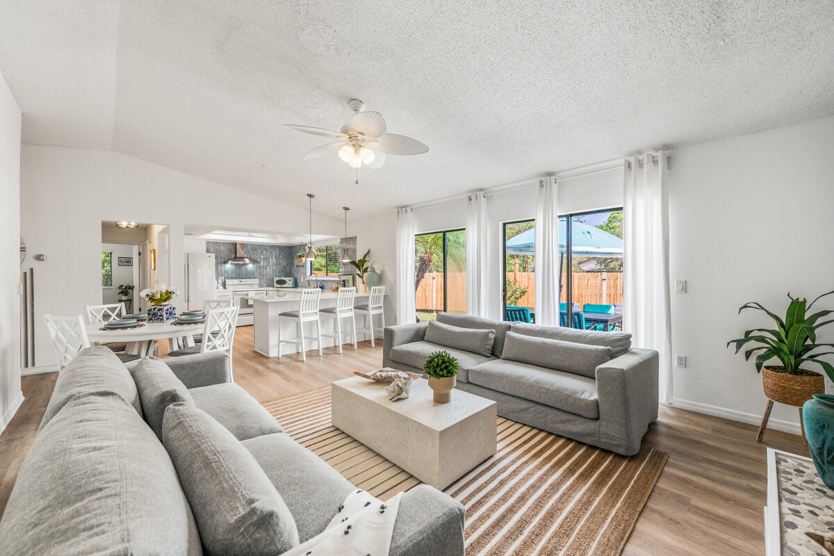 Our cozy boho beach cottage, The Mango House is the perfect place for a couple or small family to relax and enjoy all the best Sarasota amenities. It’s conveniently located right between both Siesta Key entrances, walking distance to restaurants, grocery stores, Trader Joe’s, gym and a block from the popular Walt’s Fish Market. This gorgeous bungalow is the front house of a duplex on a large lot with plenty of cozy private outdoor space to relax and take in all the wonderful Florida weather!