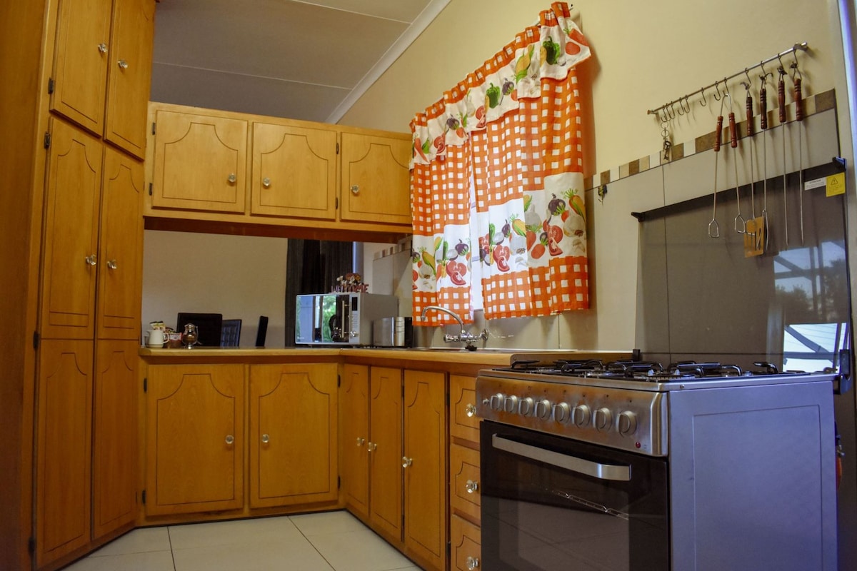 Boravite u prostranoj seoskoj kući iz 1930-ih, pogodnoj za kućne ljubimce, na našem porodičnom vinogradu u Zelenom Kalahariju. Savršeno za porodice, grupe i duže boravke kada tražite privatnost, udobnost i predivan pogled na vinograd. Opustite se na velikim stepenicama, istražite imanje, rashladite se u prirodnoj brani i upoznajte naše druželjubive pse sa farme. Uživajte u praktičnosti samoposluživanja uz jednostavan pristup kafiću Garden Café i prostoriji za degustaciju. Vaš boravak obuhvata besplatnu degustaciju naših nagrađivanih vina, rakija i likera.