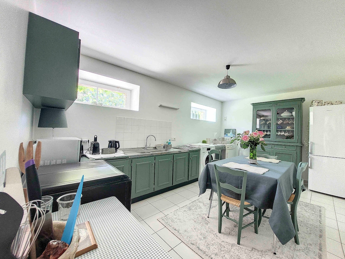 Dobro došli u naš dom! Imaćete na raspolaganju sprat naše kuće kojem ćete pristupiti zahvaljujući nezavisnom ulazu. U prizemlju se može koristiti samostalna kuhinja. Potpuno restaurirana, spavaonica ima bračne krevete i bračne krevete za jednu osobu, kancelarijski prostor i kupatilo sa tušem. Bili smo strastveni u postavljanju ovog prostora i nadamo se da ćete tokom ove pauze pronaći dobrobit.