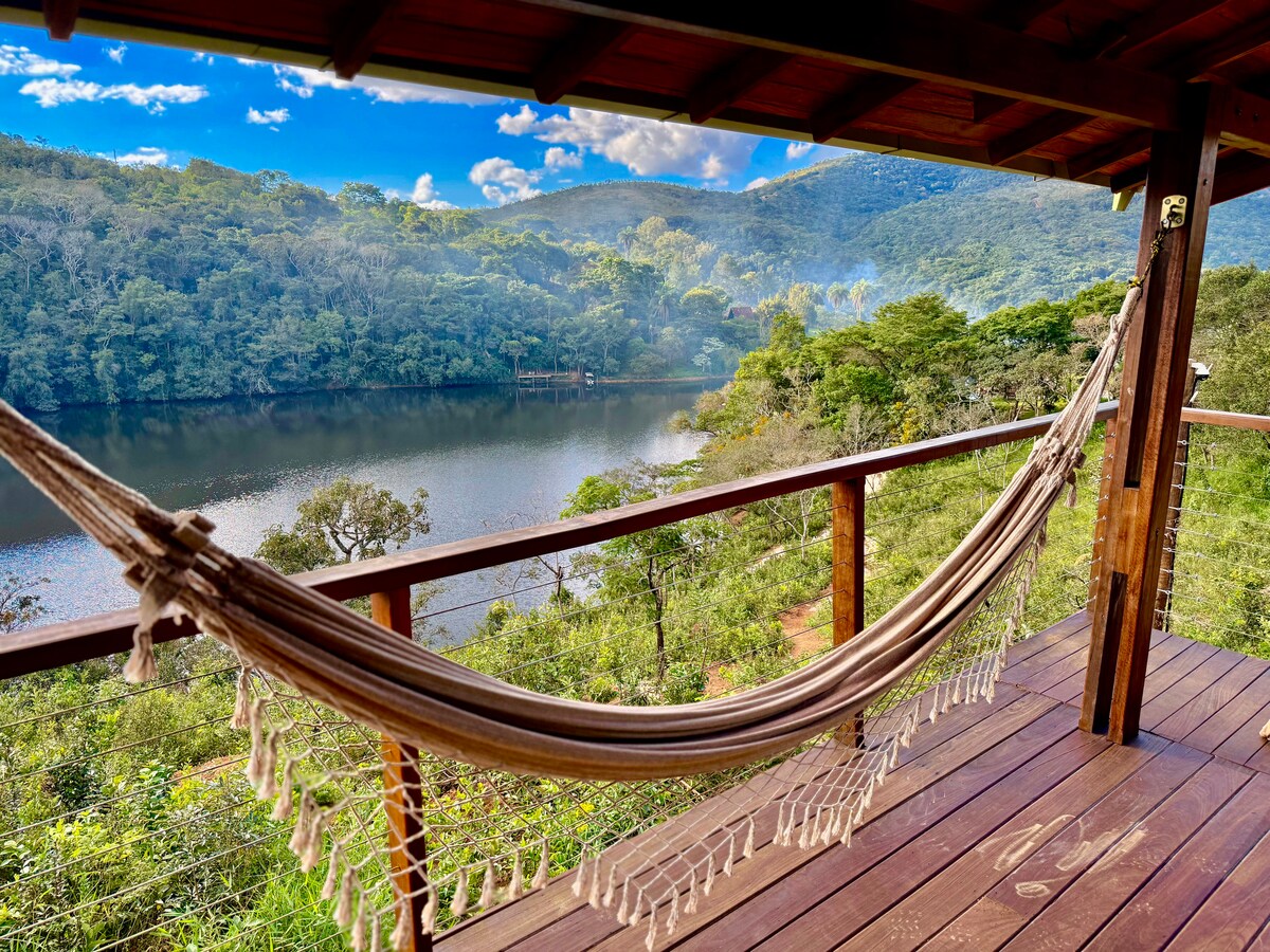 10% desconto para 2 e 3 noites. Se você está em busca de uma experiência especial e única em meio à natureza, nossa Cabana Observatório é o destino perfeito. Cuidadosamente projetada para proporcionar dias encantadores e surpreendentes, nossa cabana combina o conforto moderno com a beleza natural. E ainda tem uma cozinha muito bem equipada. Agora, os chuveiros... com certeza um banho memorável! Sem falar naquela rede suspensa, né!?