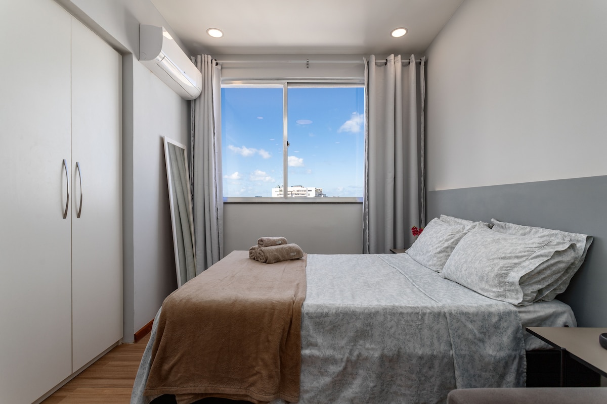 Apartamento Design ★★★★★ remodelado em 2022 com uma vista deslumbrante para a praia. Descontraia e relaxe neste lugar elegante e calmo com muitos confortos. Bem decorado com ar condicionado e NETFLIX em um prédio de Oscar NIEMEYER, o maior arquiteto Brasileiro. Muitos restaurantes, Sushi, Vegan, Steak-house, Farmacia e Mercados e ao lado do Windsor Hotel. Ideal para casais, famílias e viagens corporativas. Aceitamos proposta de aluguel de longo prazo.