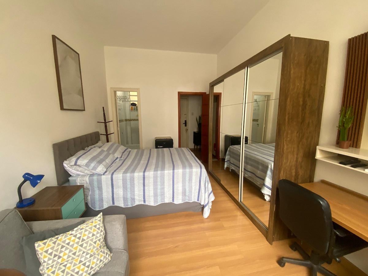 Only 200m from Copacabana beach, you can enjoy a recently renovated private bedroom and bathroom. The room is tiny, but has everthing you need for your stay. The building is safe, having 24h reception. Really well located, you are walking distance to Arpoador and Rodrigo de Freitas lagoon. Subway, Cantagalo station, is 300m far. There are supermarkets and phamacies around the corner, as well as restaurants and bars for those who like to go out for a beer or eat some traditional food.