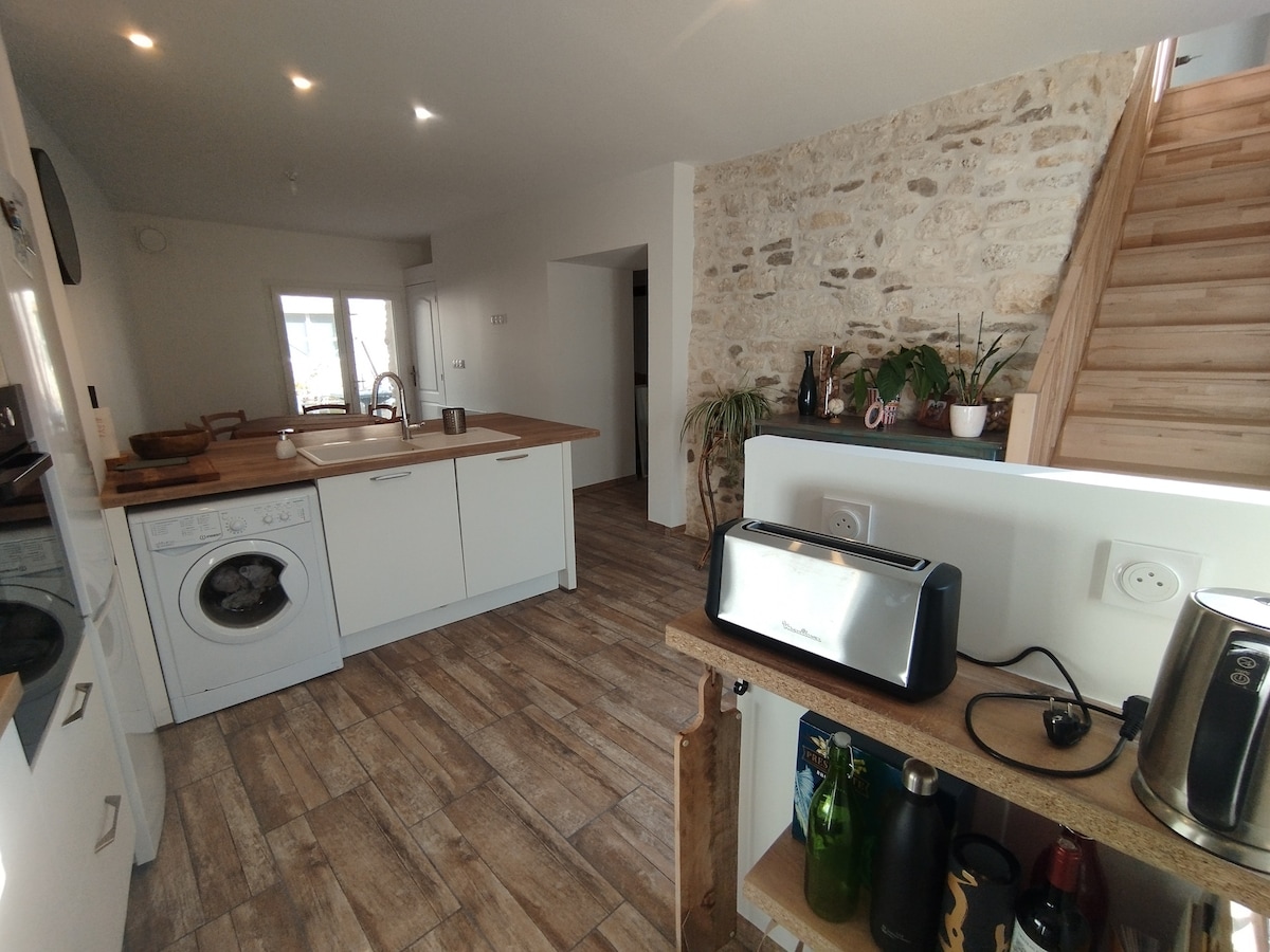 Idéal pour un moment de détente en couple et famille La maison se situe dans un village calme proche des commodités et du joli port de Mortagne Sur Gironde - Spa 5 places - Vue sur les étoiles depuis la fenêtre de toit de la chambre - 2 vélos électriques - Arrivée autonome pour plus de flexibilité sur votre horaire d'arrivée - Panier d'accueil - Wifi illimité - Draps, serviettes, peignoirs fournis gratuitement - Climatisation Tout le confort nécessaire pour passer un agréable séjour!