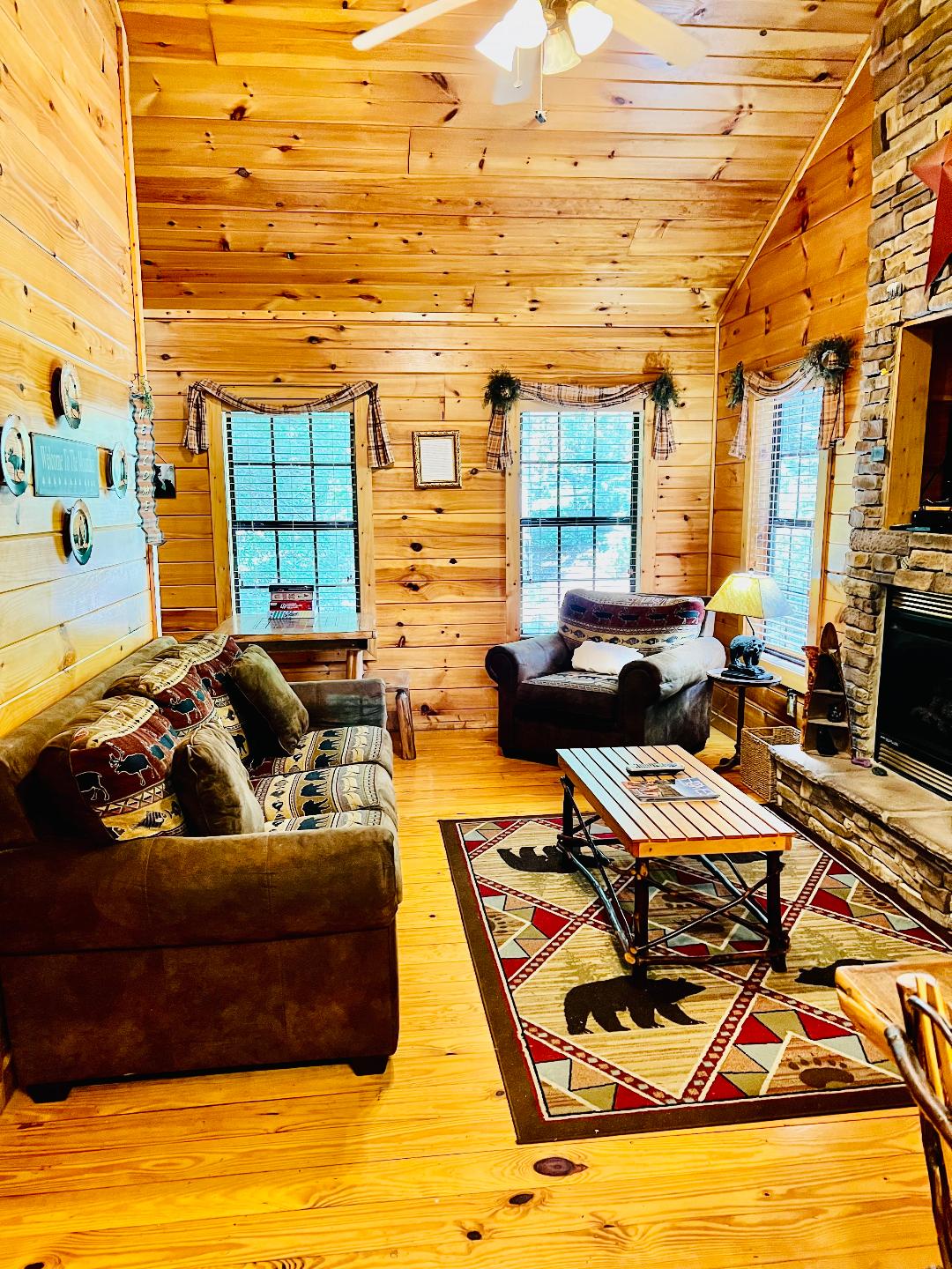 Step into a space that instantly feels like fall in the Smokies warm, inviting, and impossibly cozy. The space blends comfort and style, with a fully equipped kitchen, carefully chosen furnishings, and custom wallpaper inspired by the soft greens, and warm earth tones of the Smokies themselves. Just a five-minute walk from the shops, restaurants, and charm of downtown Gatlinburg, you can enjoy the energy of town by day and the calm of the mountains by night.