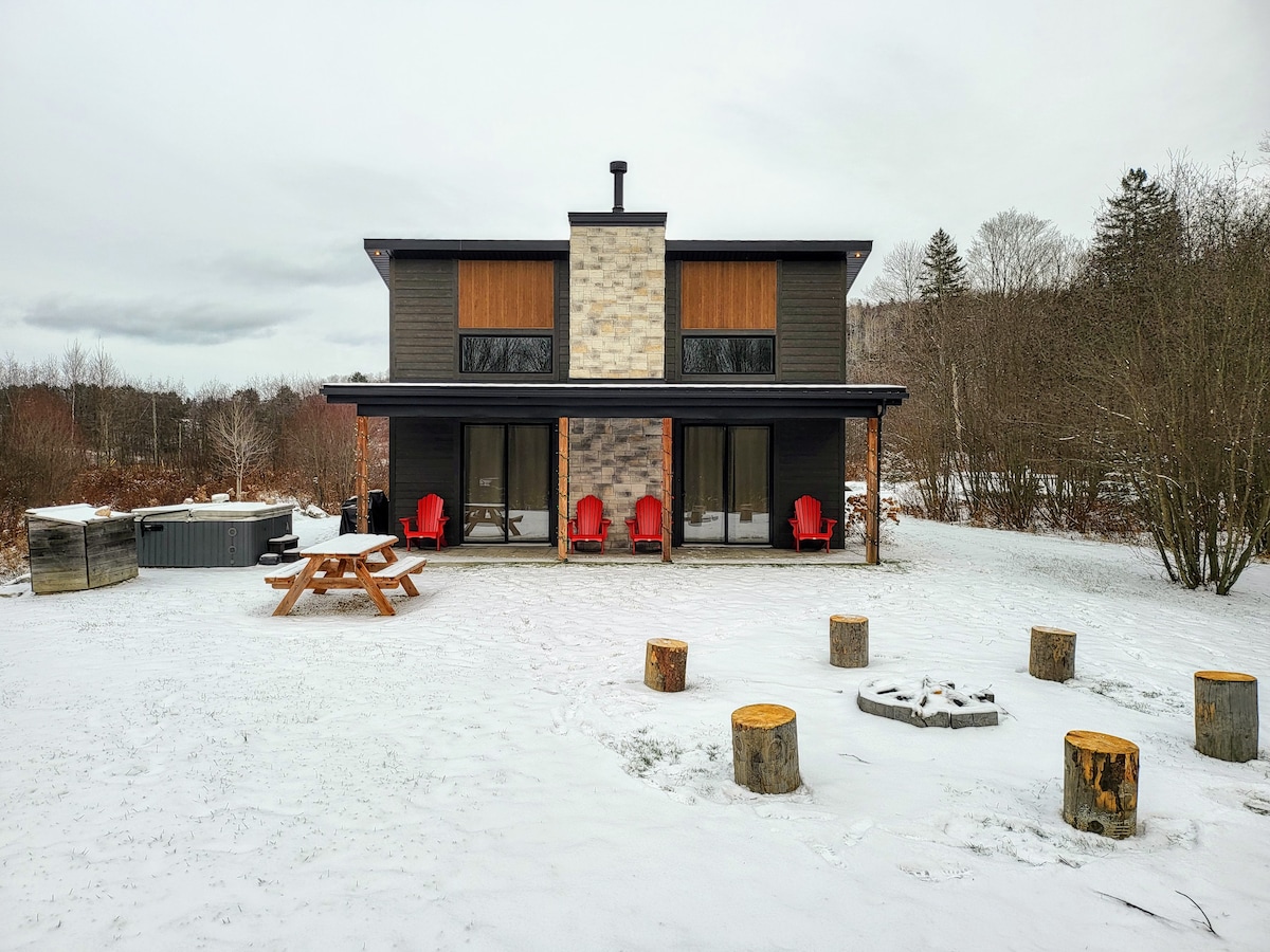 Obratite nam se za promociju u toku! Staklena brvnara arhitekte na osami smještena za pogled na planine Mont-Tremblant koji oduzima dah! Klint Tremblant (litica na danskom) je jedinstven dizajn tako da možete da se povučete u udobnost i luksuz. To je veličanstveno zastakljen arhitektonski prostor koji kombinuje prirodnu jednostavnost i savremeni luksuz, 10 minuta od sela Mont-Tremblant i panoramske terase i privatne hidromasažne kade u Laurentianu. Dizajnirao ga je poznati kanadski dizajner u zajedničkom domenu od 1200 hektara!