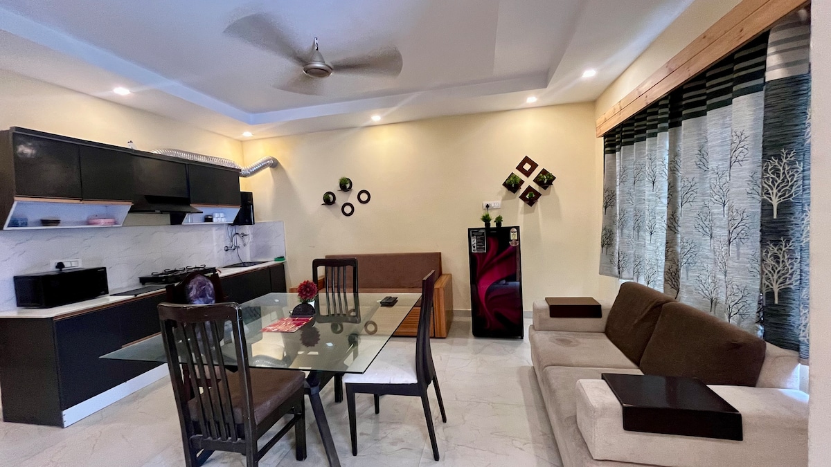 2BHK Flat | Mountain View | Common Swimming Pool. Hotel is 450m above from main road. Centrally located in Upper Tapovan, you’re just minutes away from: > Laxman Jhula - 1.8 km > Ram Jhula - 2.6 km > Janki Setu - 3.3 km > Hanuman Setu (New Bridge) - 1.8 km > Triveni ghat 3.9 KM For adventure lovers, nearby activities include: • River rafting • Bungee jumping • Giant swing • Zip-Line