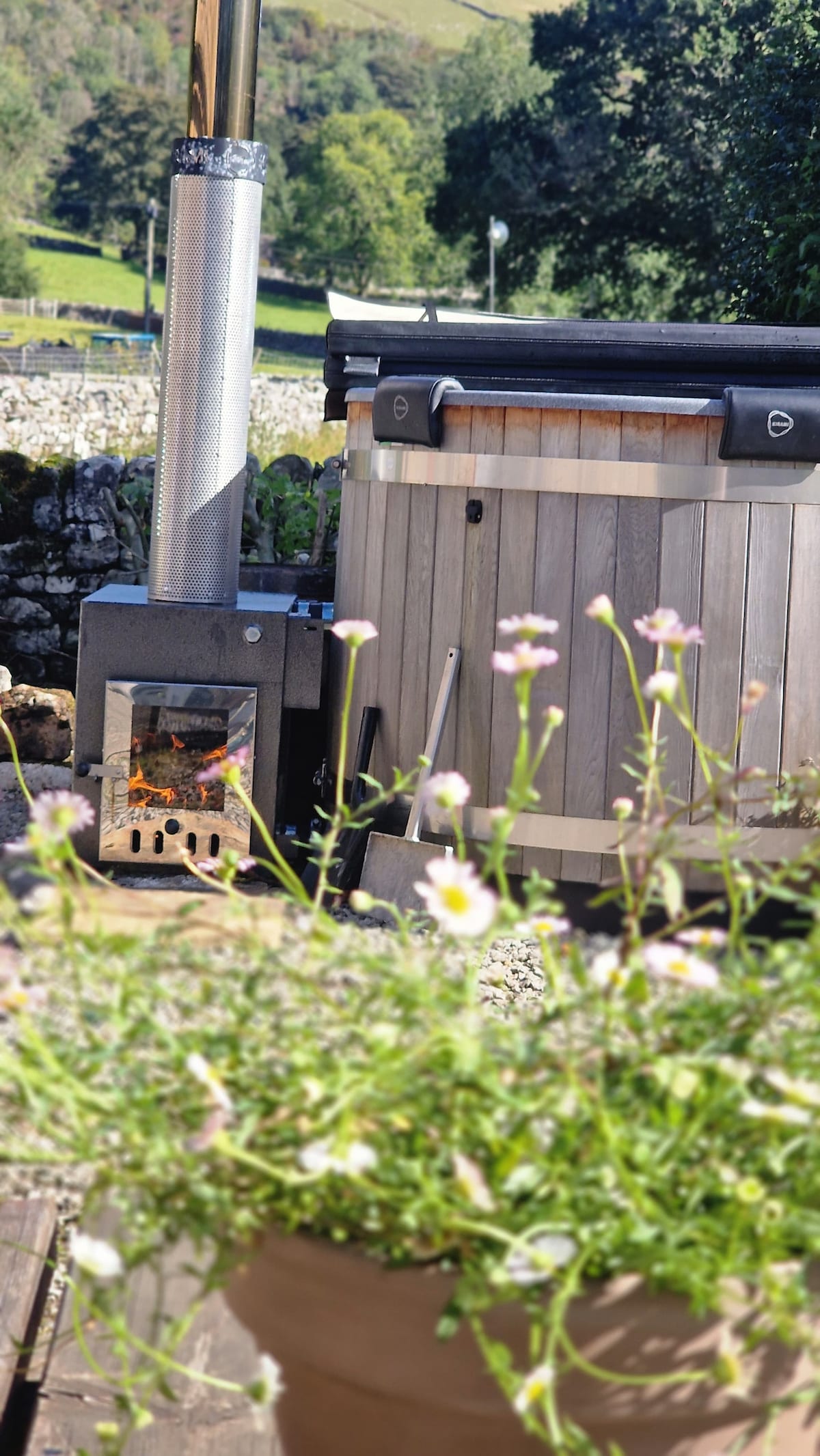 The Old Potting Shed is a romantic hideaway for two set in the walled garden of the owners' house with its own private entrance. The retreat is totally secluded, but still just a minutes walk to Sedbergh's lovely pubs and cafes. It's the perfect base: head out walking in the hills straight from your door or use our electric bikes to explore the quiet lanes. When you get back, soak in the wood fired hot tub and enjoy a drink on the terrace while admiring the wonderful view of the fells.
