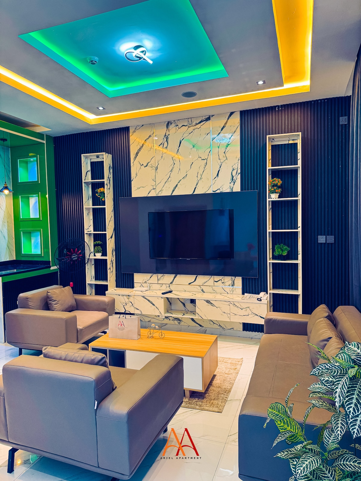 Forget your worries in this spacious and serene space. feel the comfort of: 1,2,3 and 4 beds featuring: •luxurious king and queen size beds •large tv screens (minimum 55") in all rooms •Swimming pool •Snooker and table tennis gives you a mind blowing experience. •located away from major roads providing a peaceful and quiet environment The stylish and unique interiors, gives you a mind blowing experience. why not treat yourself to a unforgettable mini holiday with Adonai Luxury Apartment.