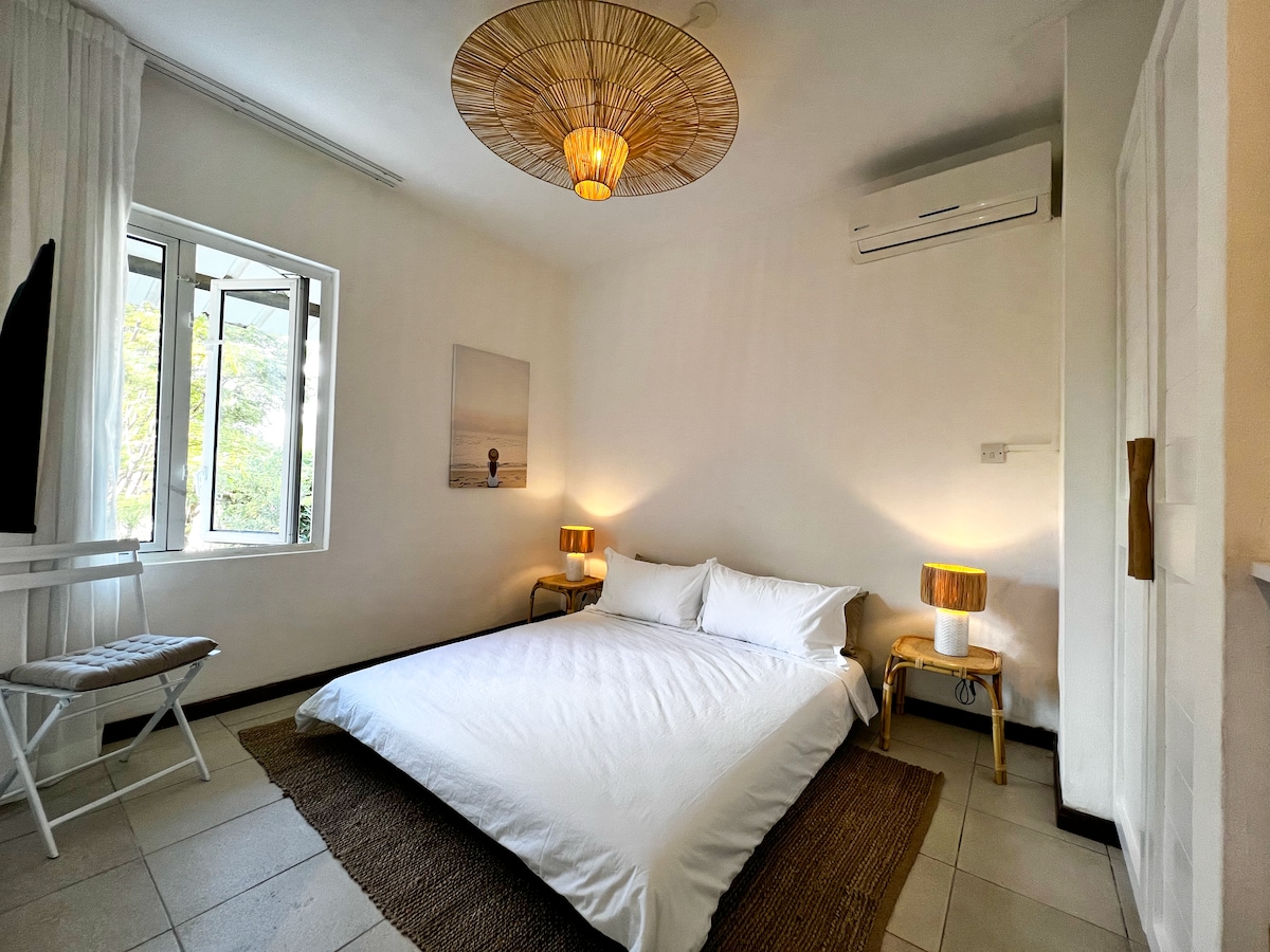 Vaš stan na 1. spratu u novoj, maloj gostinjskoj kući. Ima 2 spavaće sobe, 2 kupatila, salon, kuhinju i privatno unutrašnje dvorište. Možete uživati u grijanom bazenu na krovu, teretani i stolu za piknik. Nalazi se u blizini privatnih plaža i butik hotela. Stan se sastoji od velike privatne terase za roštilj, vanjskih sjedala i pristupa drugoj vanjskoj kuhinji i prostoru. Lokalni restorani i hoteli su udaljeni nekoliko minuta hoda. Klima u svim sobama. Point aux Canionniers is between Mont Choisy Beach and Grand Baie.