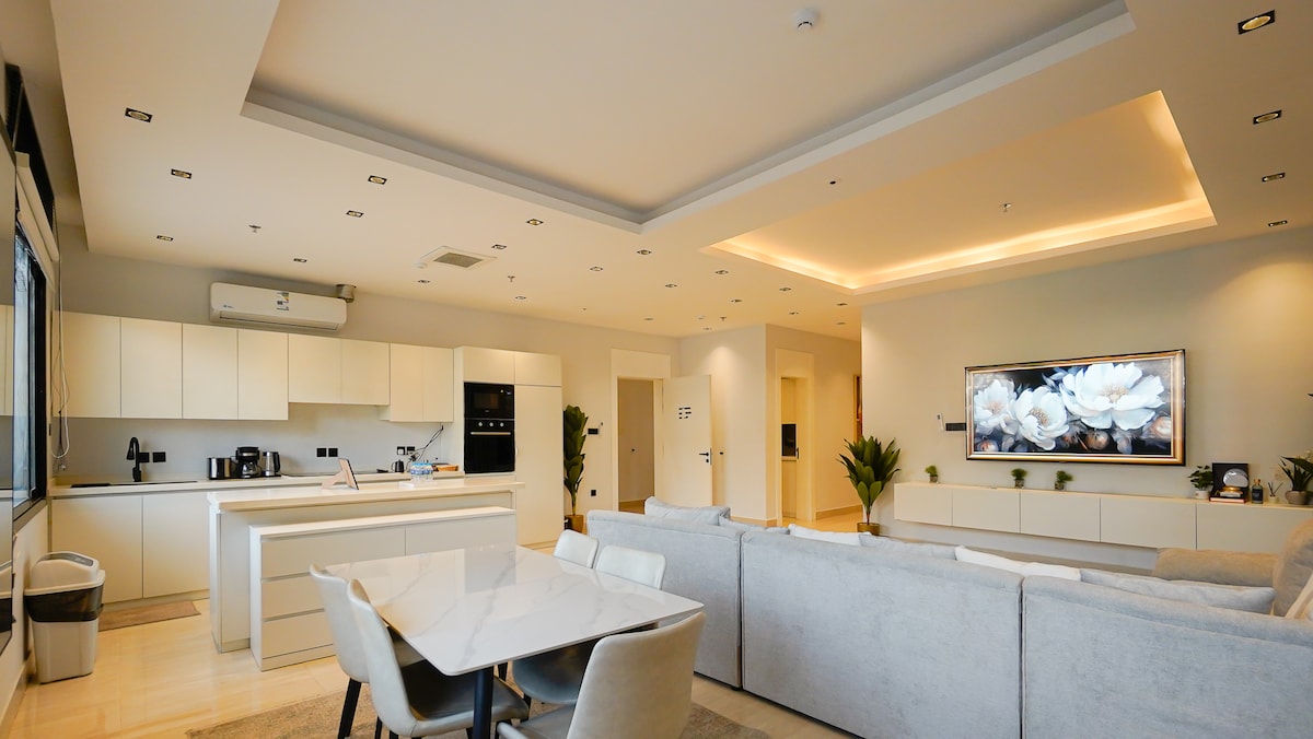 Već smo promijenili koncept ugošćavanja na Airbnb-u nudeći ovaj luksuzni stan, koji je prepoznatljiv u svakom pogledu : - postoji centar grada i u blizini živahne ulice Tahlia, luksuznih restorana i poznatih tržnih centara. - Stan je dizajniran sa luksuznim detaljima, finim detaljima i visokokvalitetnim nemačkim drvenim podovima. - Osjetićete prostor kada uđete direktno. - Udoban san na udobnom krevetu na pamuk. - Vaše zdravlje je važno, tako da nema potrebe da idete u sportski klub, gdje smo opremili stan potrebnom opremom za obuku.