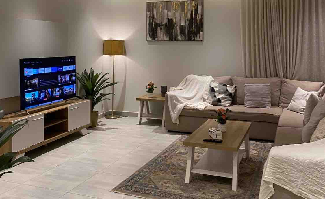 Experience comfort and elegance at Longan Suites — a modern apartment in the heart of North Riyadh, strategically located between two of the city’s main roads. The ideal choice for families and business travelers seeking comfort, sophistication, and a touch of luxury. ✨ Features: • 2 spacious bedrooms • 2 bathrooms (master with Jacuzzi) • Modern living room with Samsung cinematic TV • Fully equipped kitchen + dining table for 4 persons • Elegant finishing and stylish lighting design