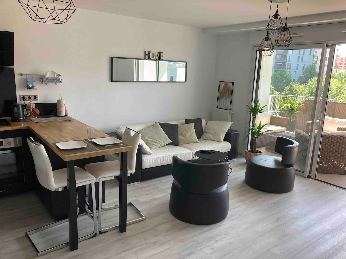 Dođite i smjestite se u našem svijetlom, prostranom utočištu u popularnoj četvrti Mail Mitterrand, nekoliko koraka od centra grada. Idealno i za rad i za slobodno vrijeme, ovo potpuno opremljeno urbano utočište nudi brzi Wi-Fi, Netflix, Nespresso aparat, monitor sa širokim ekranom, zvučnik Devialet i još mnogo toga za vašu udobnost. U blizini se nalazi prostor za vježbanje na ulici, dječje igralište, iznajmljivanje kajaka za riječne avanture i živopisnu trkačku/biciklističku stazu uz rijeku. Obećajemo vam nezaboravan boravak!