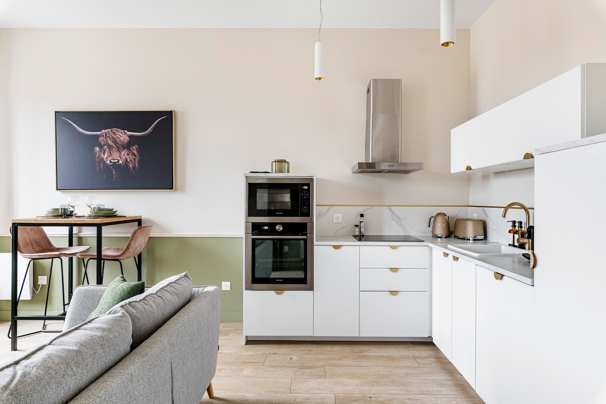 Opustite se u ovom jedinstvenom i mirnom prostoru. Uživajte u prijatnom trenutku u centru grada, sa malom terasom, velikim ekranom sa France 24, uključujući Molotov. I mnogo drugih Doručak vas čeka da dovršite ovaj prijatan kratki boravak i Nespresso aparat za kafu vrlina plus na licu mjesta kako biste zadovoljili ukus dobre kafe. Kupatilo sa Jakovljevom DELAFON kadom će biti prednost .