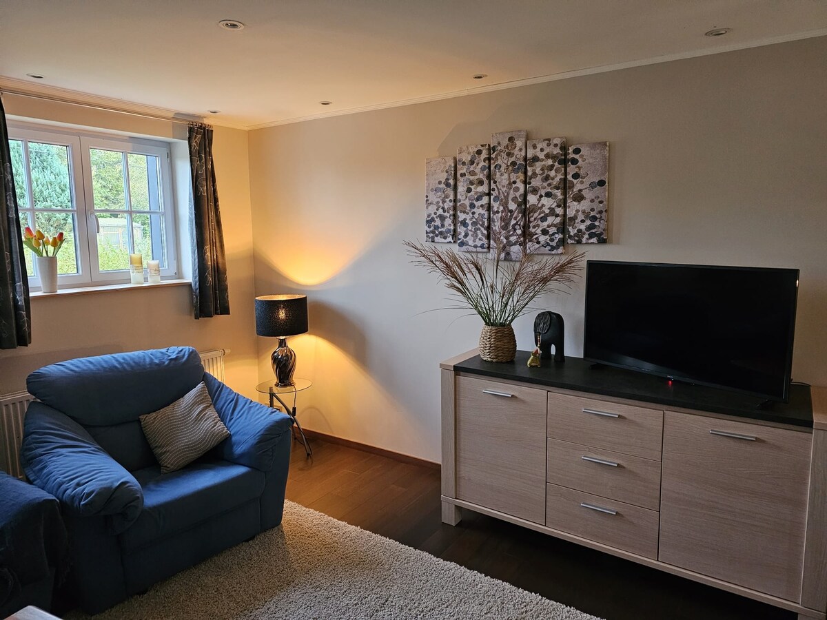 Pojedinačni stan koji uključuje: opremljenu kuhinju, WC kupatilo, trpezariju,dnevni boravak sa kaučem na razvlačenje koji se može pretvoriti u bračni krevet (pripremljen u krevetu na zahtev), 1 dvokrevetnu spavaću sobu sa pogledom na terasu,WI-FI, 4 spoljašnje sunčanje, roštilj i suncobran na zahtev, posteljina, peškiri. Stan nije klimatizovan, ali ostaje hladan leti. 4 km od Lac des Vieilles Forges 14 km od Rocroi: grad sa zidinama Vauban. 20 km od Parc terralitude Paintball, zip line, penjanje na drveće