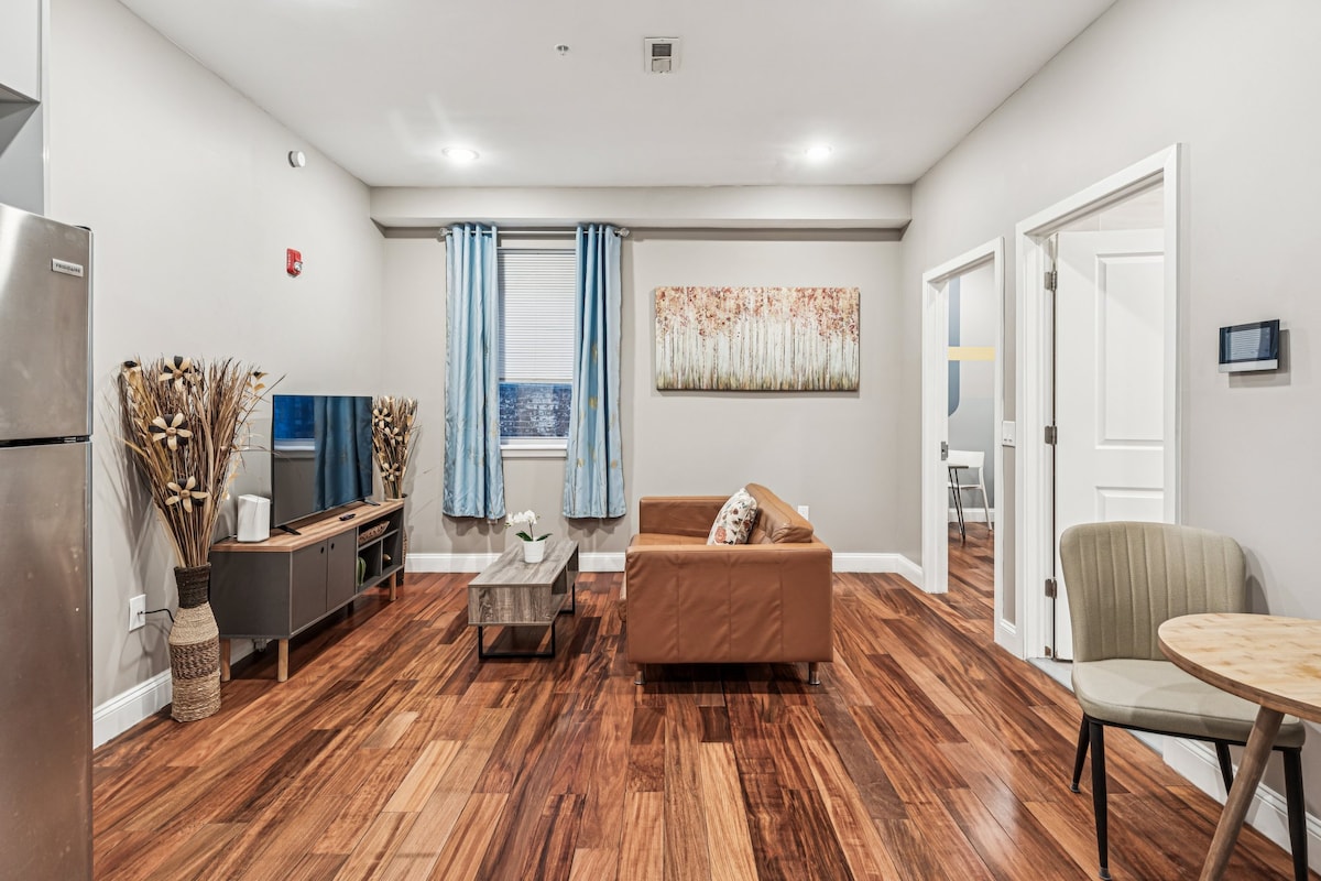 Ovaj moderni stan ima 1 veliki bračni krevet, 1 spavaću sobu, 1 kupatilo, TV od 65inča u dnevnoj sobi i TV od 55inča u spavaćoj sobi. Nalazi se na samo 3 minuta vožnje od Kongresnog centra, kineske četvrti, tržnice Reding Terminal, tržnih centara, barova, restorana i salona. Naš elegantni stan nudi savršeno utočište nakon dugog dana istraživanja poznatih atrakcija Filadelfije, sa vrhunskim sadržajima i praktičnom lokacijom.