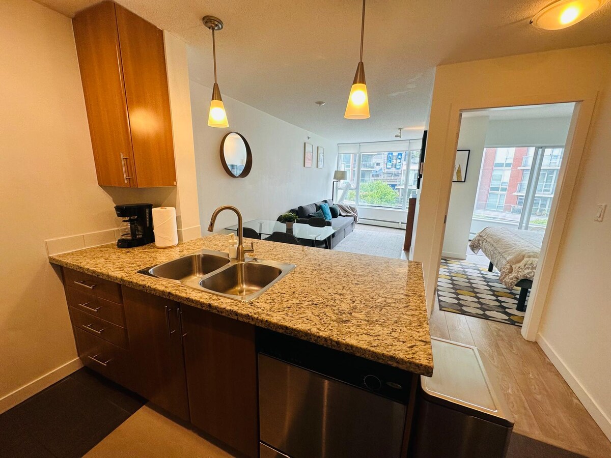 Dobro došli u moderan stan 1BR 1Bath u samom srcu centra grada. Obećava opuštajuće utočište u neposrednoj blizini atrakcija, restorana, prodavnica i zabave. Posjetite obližnju arenu Rodžera, Svet nauke i istorijski Gastovn ili se popnite na Skajtrain i istražite sve što Vankuver nudi pre nego što se povuče u ovaj elegantan odmor. ✔ Udoban život✔ otvorenog dizajna BR ✔ Full Kitchen ✔ Smart TV ✔ Balkon ✔ Brzi Wi-Fi ✔ Sadržaji u objektu (bazen, teretana, parking) Pogledajte više U nastavku!