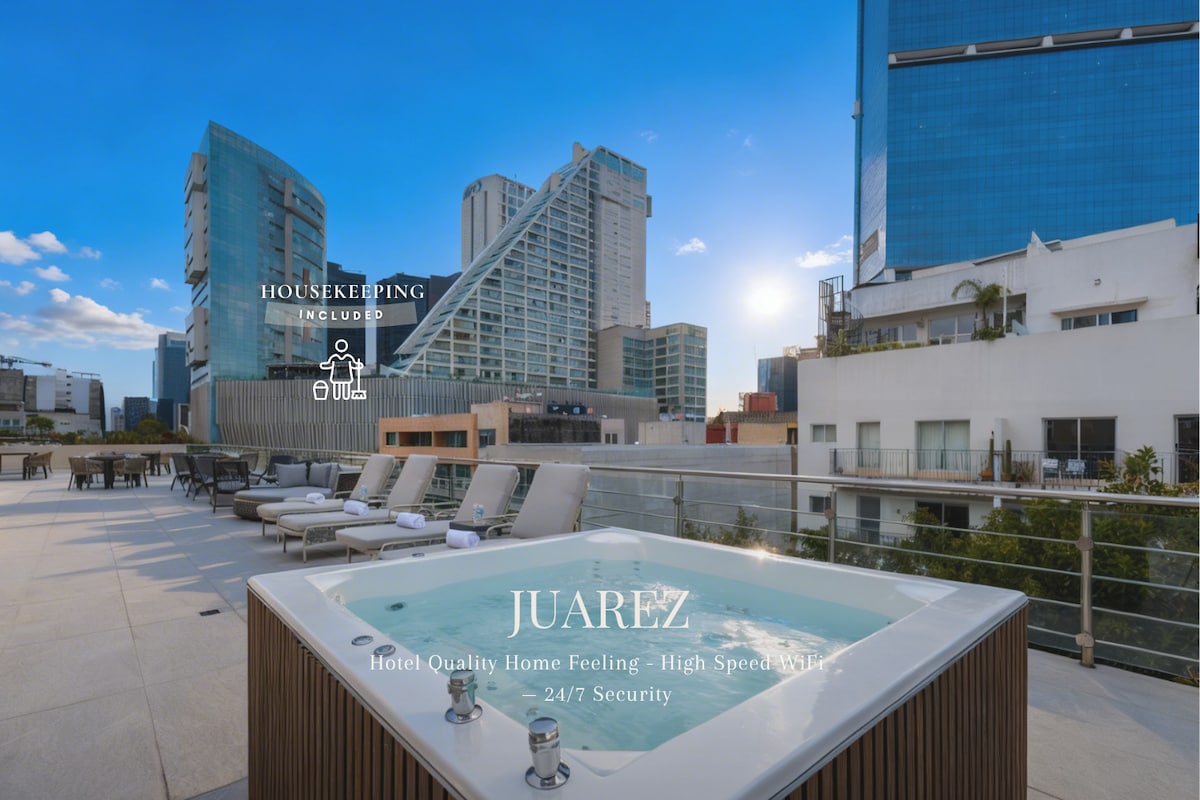 Experience Mexico City from this stylish loft in trendy Colonia Juarez. Perfectly located, walking distance from Roma Norte, Condesa, Zona Rosa, Polanco, and Reforma, it's ideal for couples, friends, families, and business travelers. Enjoy a spacious open-floor kitchen, living room, dining area, and large patio. With 24/7 security, high-speed internet, and easy access to public transportation, exploring the city is a breeze. Make this your comfortable and convenient home in vibrant Mexico City!