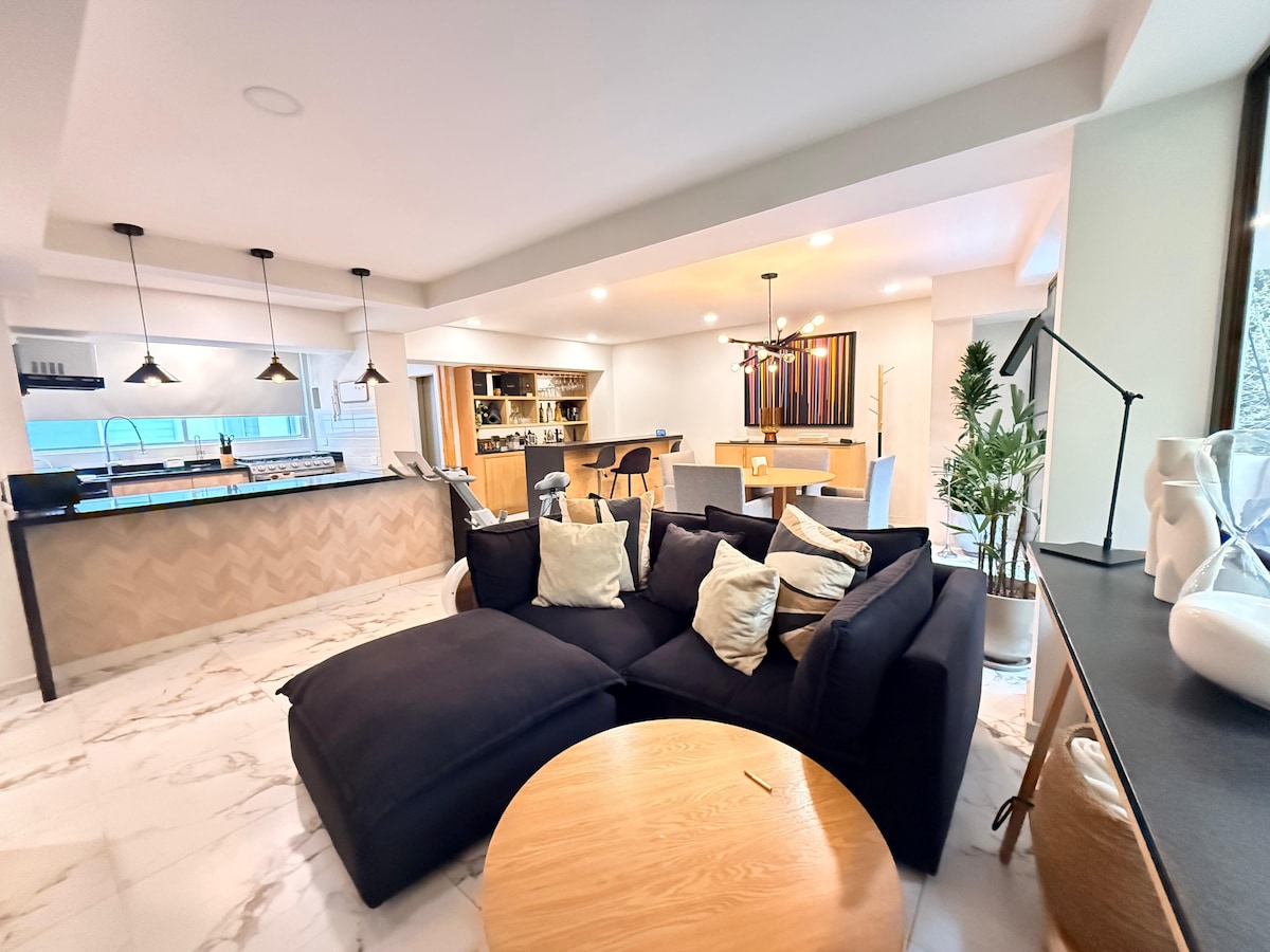 Two suites, a spacious kitchen, and a living room with a sofa bed. Designer-inspired, these suites boast floor-to-ceiling windows offering panoramic views of Reforma Avenue, from sunrises and seas of clouds to cityscapes at night. • Prime downtown location: 5-minute walk to the metro station to the Reforma financial district, 20 minutes to the airport. • High-speed Wi-Fi + comfortable workspace, adjacent to a business center/cafe.