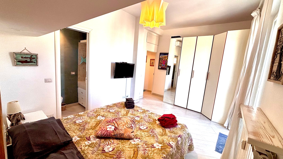 Ovo jedinstveno rustikalno, ali elegantno potkrovlje puno je detalja od drveta, metala i kamena, a sve je ručno izradio Đulio, njegov vlasnik. Fantastična terasa će vam oduzeti dah. Šta kažete na kafu u papučama dok razmišljate o Koloseumu ili posmatrate zalazak sunca iza vatikanske sjene iz kade u kolibi? Nalazi se nekoliko minuta od stanice Termini, ali je i dalje miran dom. Pristup stanu se vrši stepenicama. Doručak je na naš račun!