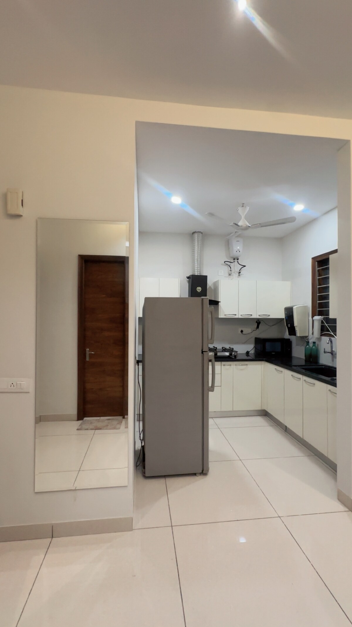 Ālaya | Ceo privatni sprat sa 2 luksuzne spavaće sobe i osunčanim unutrašnjim dvorištem | Sektor 42 Zamislite da imate ceo privatni sprat samo za sebe, ušuškan na 2. spratu (do kojeg se dolazi stepenicama; nema lifta) u mirnom stambenom kvartu. Zakoračite u pažljivo uređen dom sa dve prostrane spavaće sobe, povezanim kupatilom i potpuno opremljenom kuhinjom. Sada zamislite sebe kako izlazite na veliko privatno dvorište, svoje sopstveno utočište na otvorenom. Prostor dizajniran za goste koji cene eleganciju!