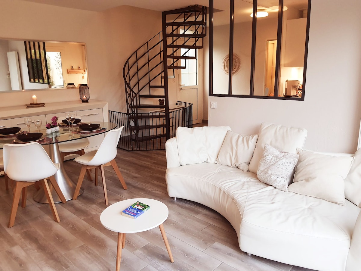 Détendez-vous dans ce studio de 30 m², idéal pour 1 à 4 voyageurs, alliant charme et style industriel. Profitez d’un coin bureau, d’une cuisine équipée, d’une salle de bain et d’un salon cosy. Une spacieuse terrasse vous invite à savourer un moment de calme en pleine verdure 🌿. À 10 min à pied du centre-ville de Muret et de son marché du samedi, et à seulement 25 min en voiture du cœur de Toulouse. Draps, serviettes, café, torchons et parking : tout est inclus ✅.