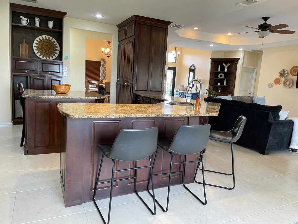 Welcome to Casa GrandView, a custom-built home with 3 bedrooms, 2.5 bathrooms, and space for up to 7 guests. Enjoy a fully equipped kitchen, granite countertops, comfy beds, and quality linens. Relax on the spacious patio with BBQ and evening lights, perfect for sunsets and peaceful views of open land and mesquite trees. 1.7 miles to Kickapoo Lucky Eagle Casino and 6.5 miles to groceries, shops, taco trucks, local tortilla factory. Weekly/monthly discounts available! Come relax and unwind.