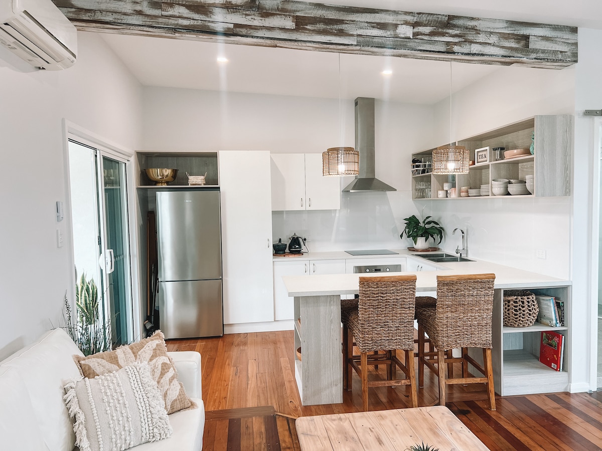 Obalno skrovište se nalazi između popularne gradske plaže i Flinove plaže. Potpuno novi samostojeći stan nalazi se na pješačkoj udaljenosti od plaža i vrlo je kratka vožnja do nekih od najboljih restorana Port Makarija. Vaš Coastal Hideaway je blizu svega, ali daleko od gužve. Opustite se na terasi na otvorenom sa udobnim stolicama. Sadrži mašinu za sudove, mašinu za veš, mašinu za sušenje veša, mašinu za sušenje veša, klima-uređaj i kauč na raz Ljupka privatna spavaća soba u punoj veličini smeštena među krošnjama drveća.