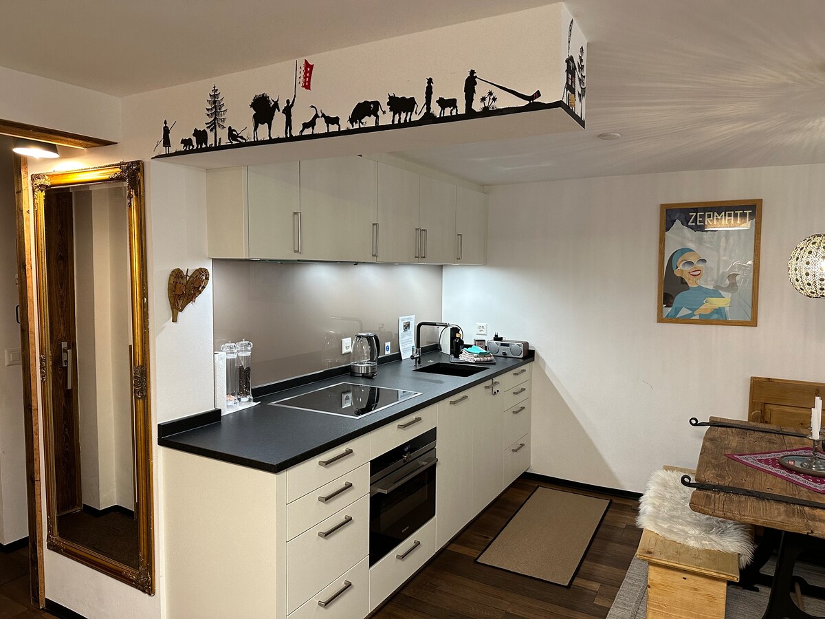 NIJE UKLJ. IN PRICE IS 4 CHF PER PERSON PER NIGHT RESORTTAX FOR ZERMATT to be left on table cash Full Matterhorn View, kao što se vidi na slici. Studio u Zermatu je vrlo dobra lokacija, vrlo ne kroz saobraćaj, pristup sa elektro taksijem, možete lako hodati od stajališta voza, što će vam oduzeti 15 minuta, a tu je i malo brdo. Šetnja do skijaške stanice Sunnegga trajaće 10 minuta, ovo je mali studio apartman od oko 18 m2, krevet na rasklapanje je dobrog kvaliteta i pruža udoban san.