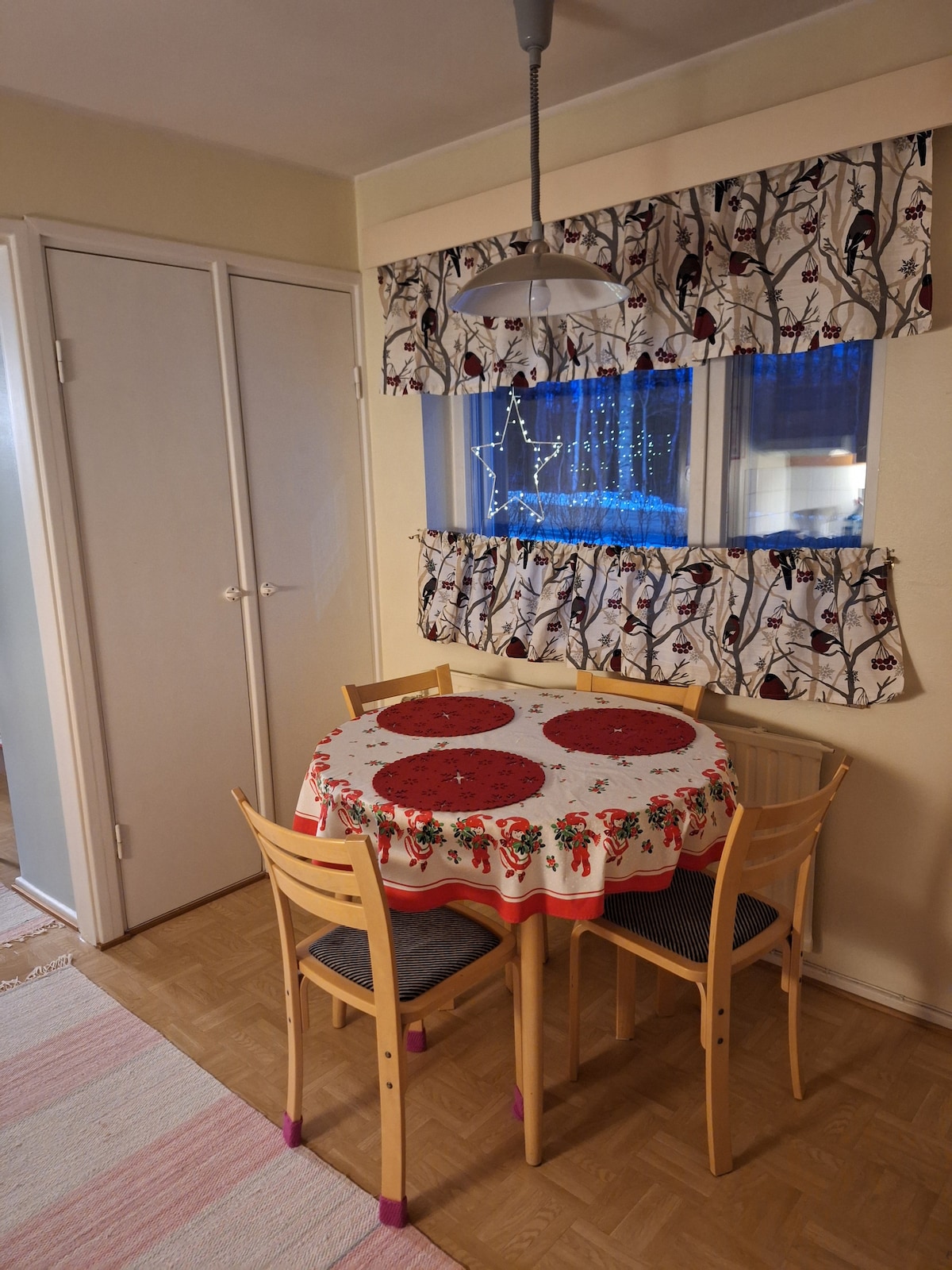 Renoviran (fotografije kuhinje su ažurirane), prostran i udoban stan u mirnoj četvrti, 5 km od centra Rovaniemija. Stan ima spavaću sobu sa udobnim bračnim krevetom, prostrani dnevni boravak sa kompletnom kuhinjom i kaučem na razvlačenje, kao i potkrovlje. Do nas možete lako doći jer živimo u istoj zgradi i rado ćemo vam pomoći oko bilo čega. Područje je mirno i blizu prirode, a u blizini se nalazi prelijepo jezero. Imamo dva bicikla za naše goste.