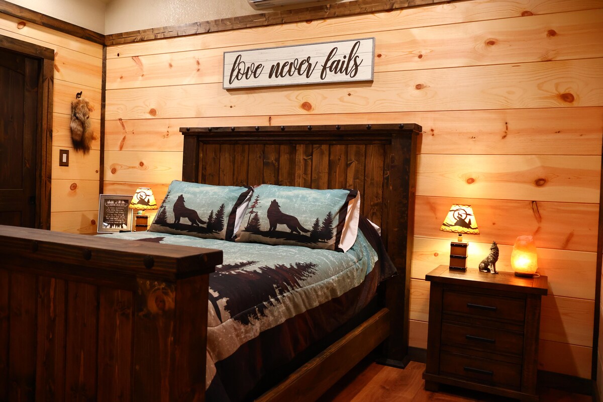 „Zagrljaj.” „Ljubavno gnijezdo”. „Nismo željeli da odemo.“ Uživajte u vrlo posebnom vremenu u našoj brvnari u šumi! Opustite se i opustite u ovom mirnom i elegantnom prostoru. Uživajte u laganoj šetnji od 15 minuta na našim stazama. Ova nova zgrada će vam pružiti prostor koji vam je potreban da se osećate okruženo najboljim u prirodi! Bez obzira na to da li tražite lično utočište, romantični odmor, vreme provedeno u jednom od prelepih jezera u našem području ili zabavnu posetu istorijskom Hot Springsu, Arkanzasu, prelepe uspomene.