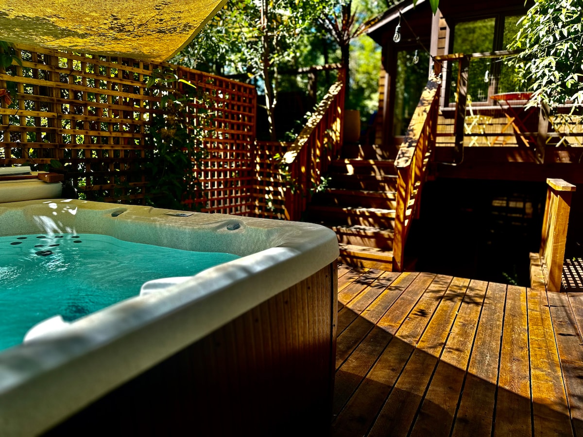 Private cozy guest unit nestled under towering Giant Redwood and Fir trees, the Sonoma coast is 20 minutes to the west and world class wineries and microbreweries start 5 minutes to the east. Enjoy the Redwood deck with dedicated guest area, bbq fireplace, and brand new hot tub as of 2/2/26. New Deck weather coverings added 10/10/24 that allows quite a bit of sheltered outdoor space.The hosts Jason and Kim and cohost Liz welcome you!