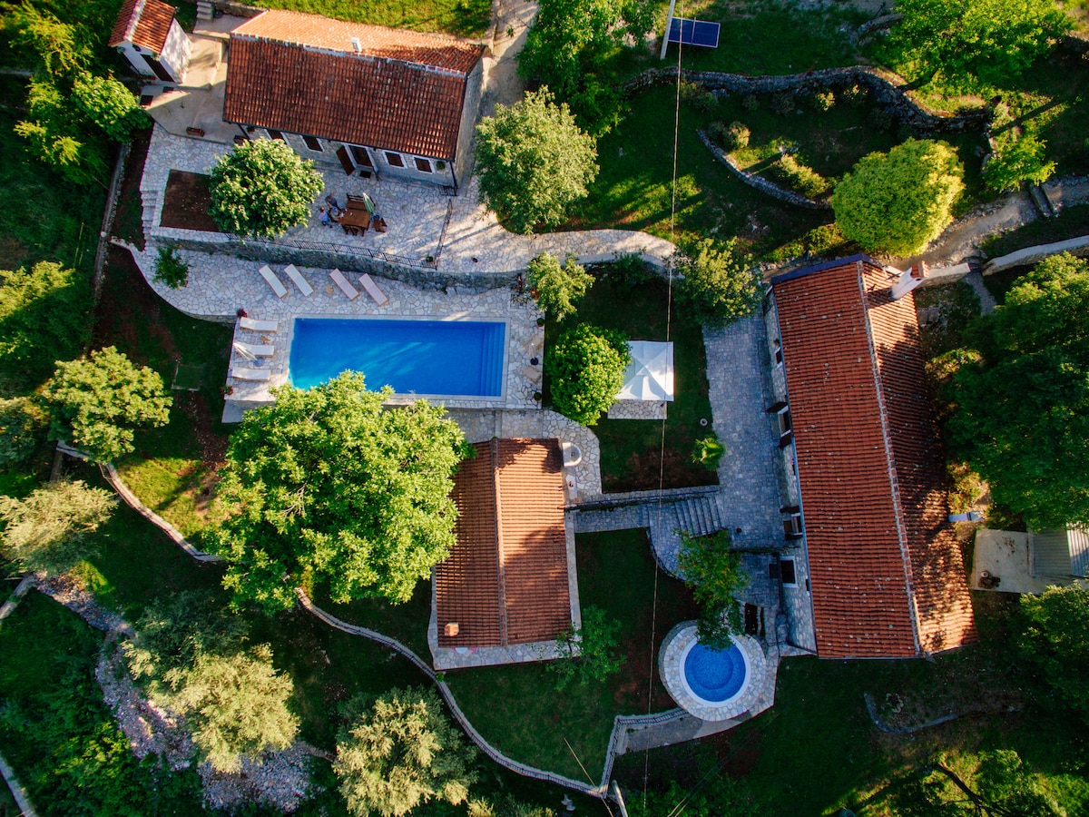 Kuća stara 300 godina nalazi se u selu u blizini Nacionalnog parka Skutarisee, 15 km od glavnog grada Podgorice i 45 km od Budve. Kuća je okružena vinogradima i livadama. Kuća pruža udoban prostor za 4-5 osoba. Bašta nudi mnogo prostora za igru djece, fudbalske golove itd. Spojne stepenice između spratova opremljene su sigurnosnom bravom za djecu. Pored bračnog kreveta (160 cm), na raspolaganju su i dva kreveta na izvlačenje (140 cm).