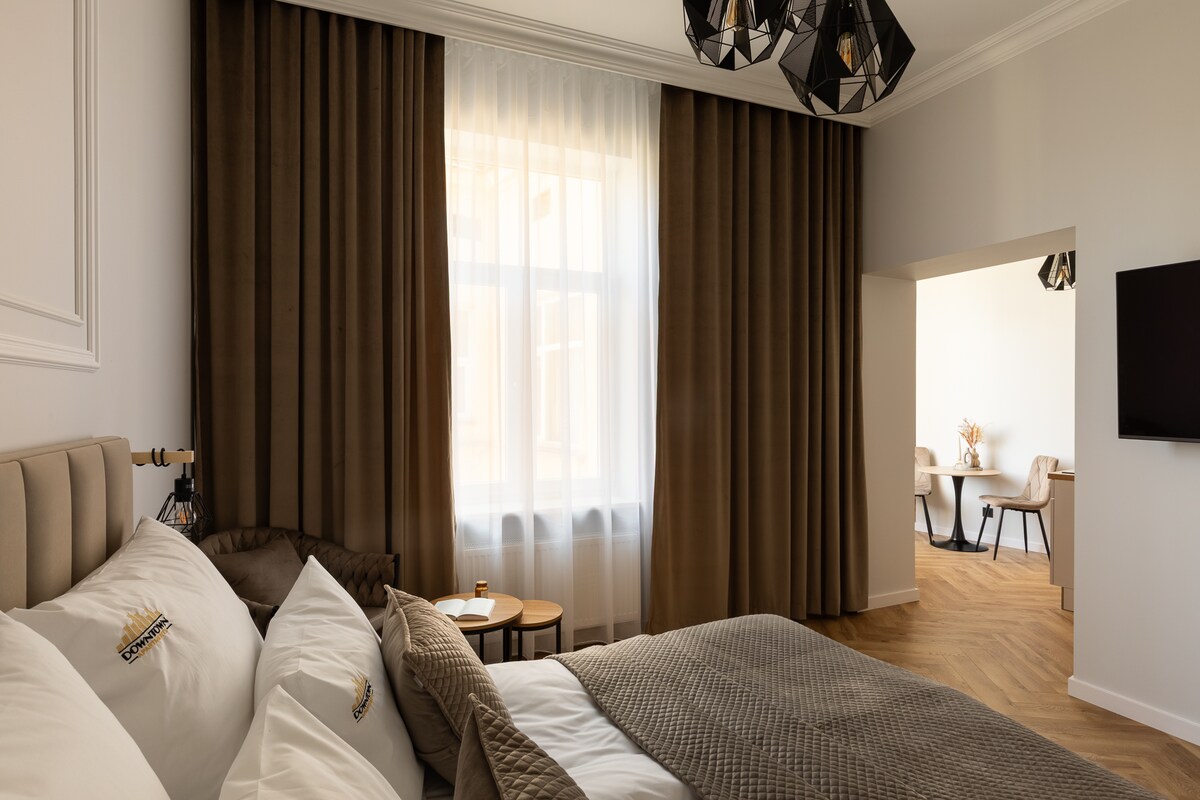 Luksuzni stan sa pogledom na glavni trg, Sukiennice i dvorac Vavel. Nalazi se u legendarnoj zgradi „Feniks“ koju je dizajnirao Adolf Szyszko-Bohusz. Stan se nalazi na četvrtom spratu i pruža najbolji pogled u celom Krakovu. Stan ima 3 prostrane spavaće sobe, veliku kuhinju, udoban dnevni boravak i dva kupatila i WC šolju sa WC-om, što pruža prostor i udobnost svim putnicima. Idealno za porodice sa decom i grupe prijatelja koji žele da uživaju u pravoj Krakovskoj atmosferi