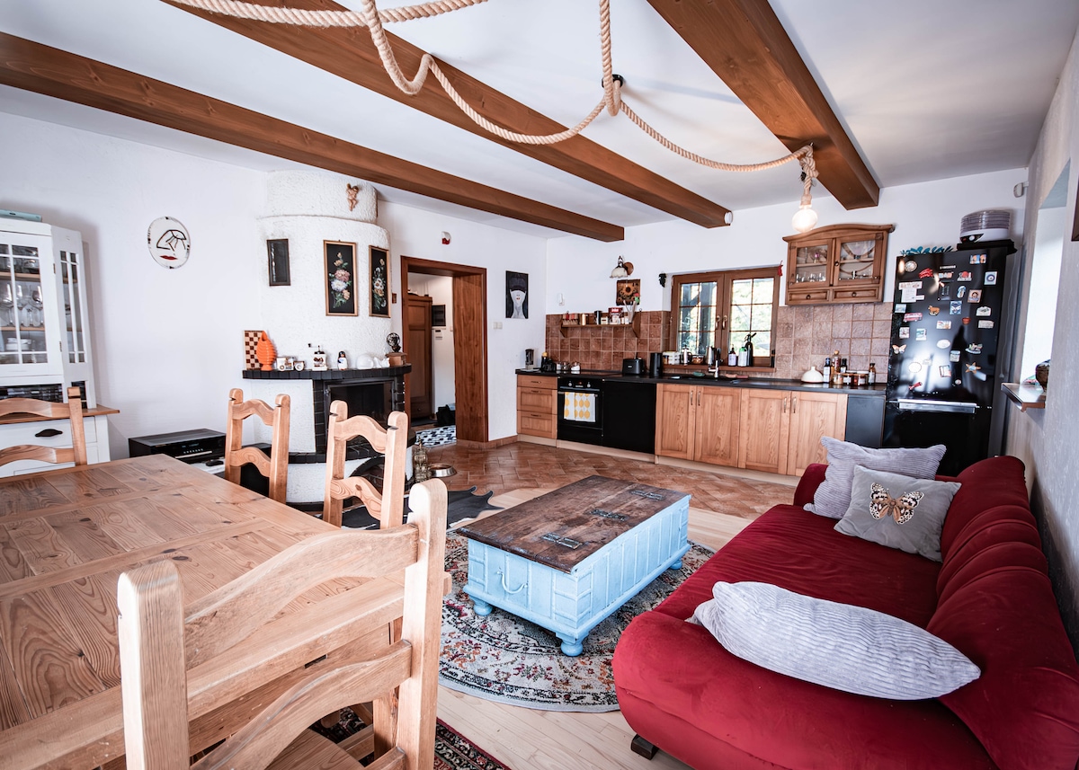 Mamy tu magiczne miejsce. Z dala od wszystkiego. Na Podkarpaciu, Bieszczady "za zakrętem", niedaleko Rzeszowa. Czeka tu na Was piękny 100 letni klimatyczny dom. Pomieścimy 10 osób. Mamy cztery sypialnie. Do dyspozycji naszych gości mamy salon z kominkiem, piękny taras z grillem, balię z jacuzzi, miejsce do gry w siatkówkę, ogromne miejsce ogniskowe z hamakami. Dla dzieci przygotowana jest trampolina i tyrolka a dla maluszków piaskownica, zjeżdżalnia oraz mnóstwo zabawek.