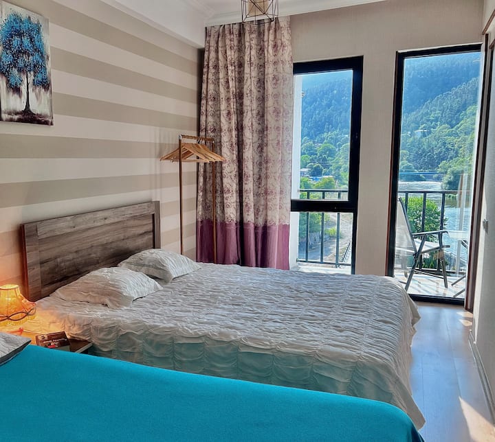 Potkrovlje u Borjomiju s ogromnom terasom i pogledom na planine.